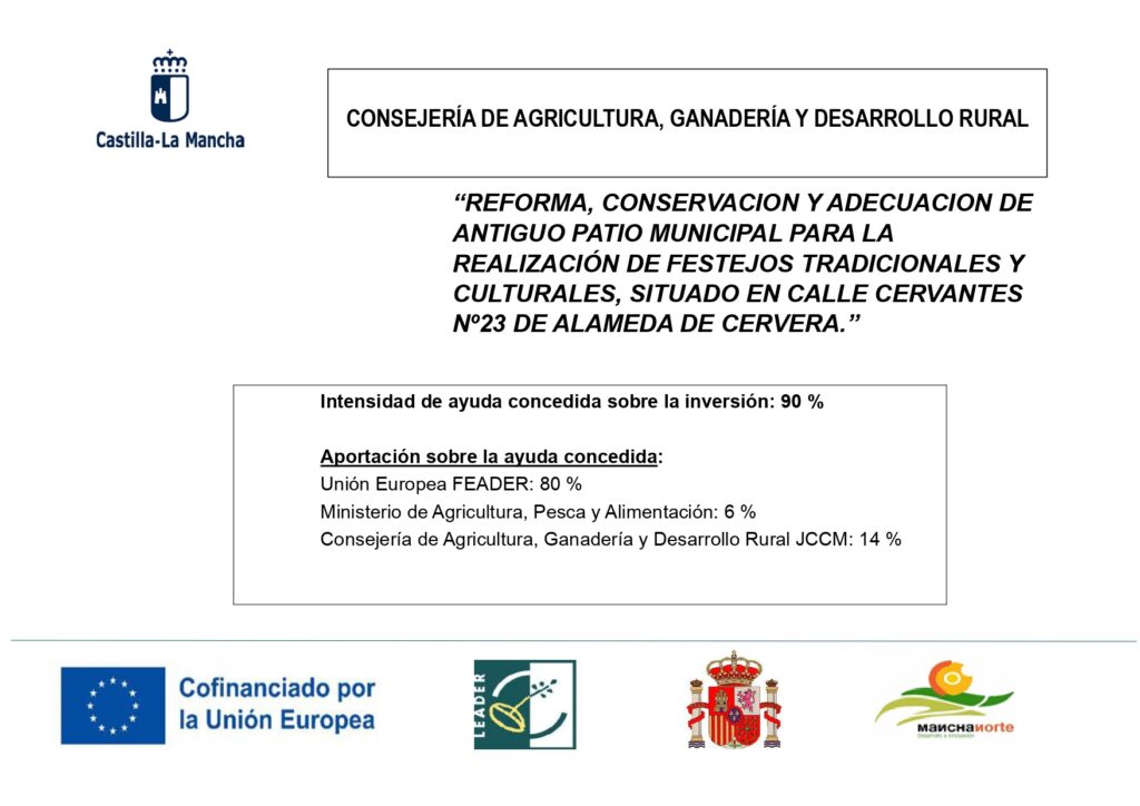 Las obras consisten en la instalación de un nuevo solado que servirá como pista de baile y la construcción de un cercado perimetral dentro del Patio Municipal para la tradicional suelta de vaquillas; una suelta que en los últimos años se realizaba mediante el uso remolques dentro de la misma instalación. Esta intervención permitirá mejorar notablemente la seguridad, la visibilidad y el disfrute de los asistentes durante los festejos. La actuación cuenta con una inversión de 79.977 euros financiada por el Grupo de Desarrollo Rural Mancha Norte a través de fondos LEADER de la Unión Europea y estará completamente finalizada a tiempo para su estreno durante las próximas fiestas de San Lorenzo.