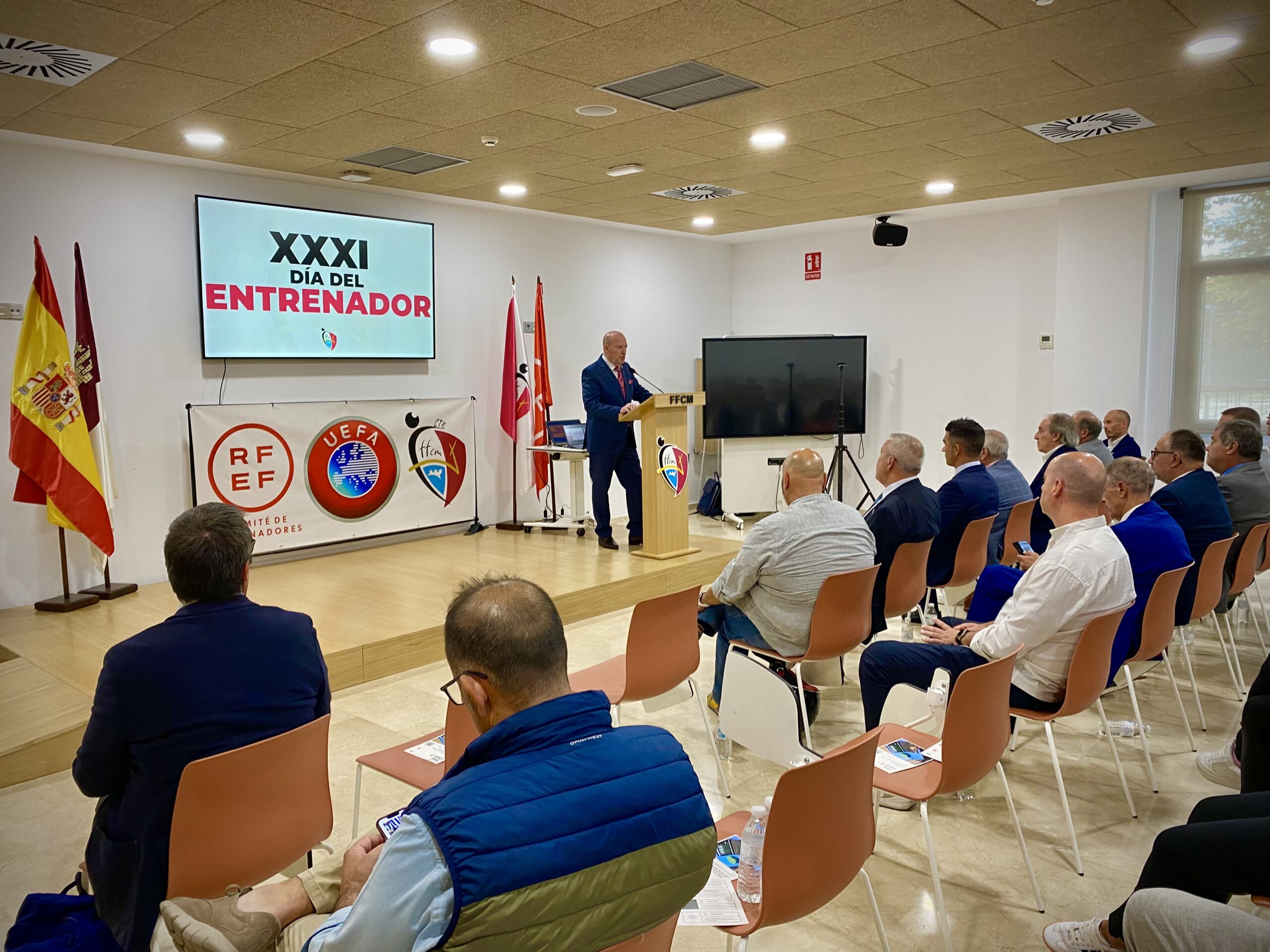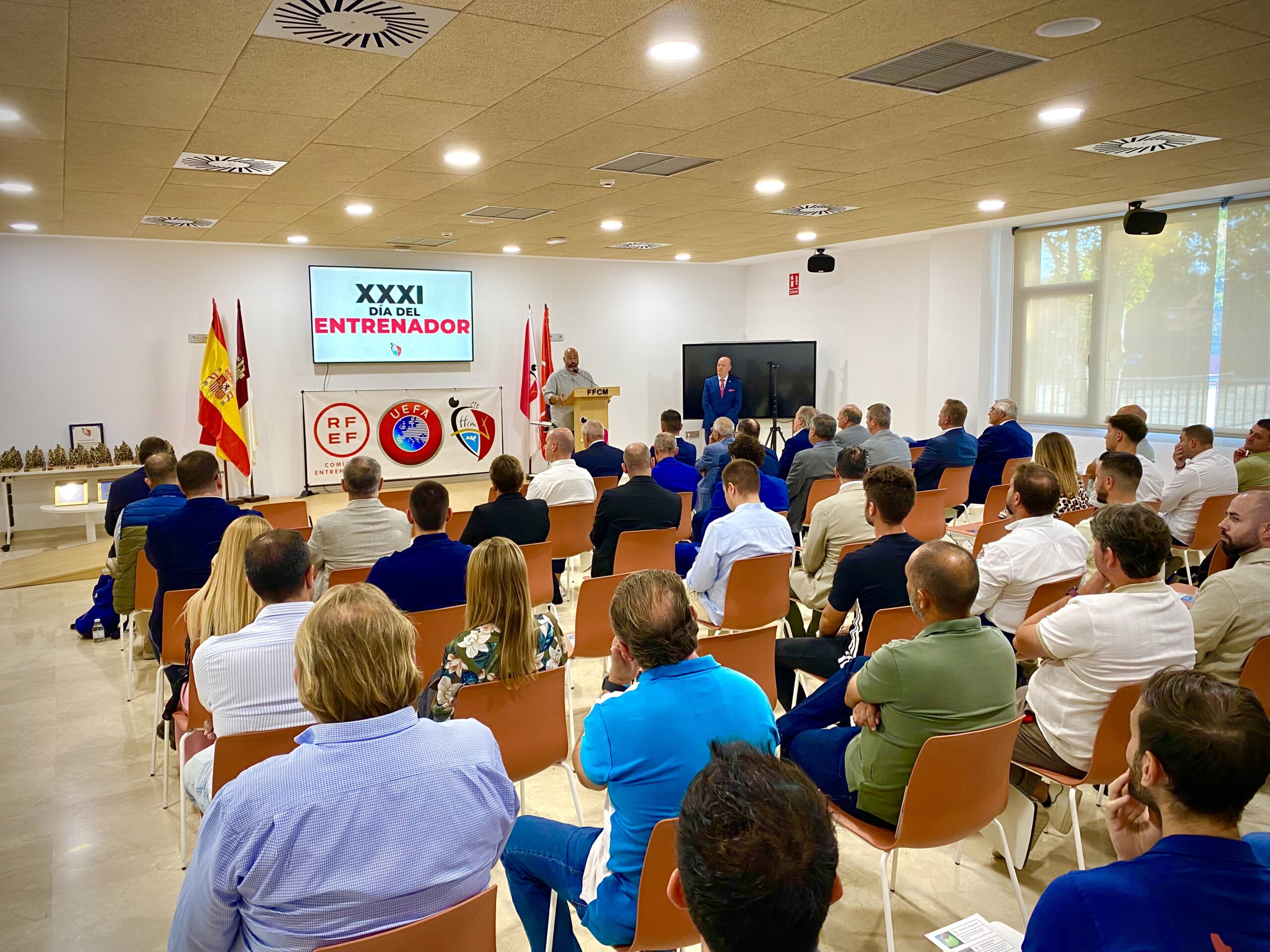 Alcázar de San Juan ha acogido en la Residencia de Deportistas de la Federación de Fútbol de Castilla-La Mancha la XXXI edición del Día del Entrenador. La cita ha reunido a técnicos de toda la región en una jornada marcada por el reconocimiento, la convivencia y la formación. Durante el encuentro se ha rendido homenaje a los entrenadores que han alcanzado éxitos deportivos en diferentes campeonatos, en un ambiente festivo en el que también se ha puesto el foco en los retos de futuro y en la aplicación de nuevas tecnologías en el ámbito futbolístico.