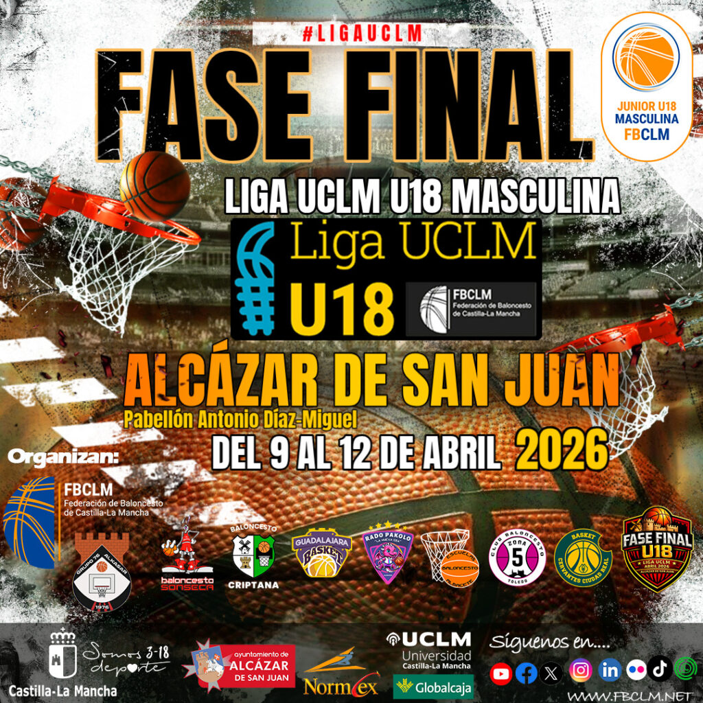 Alcázar de San Juan acogerá del 9 al 12 de abril la Fase Final de la Liga UCLM U18 masculina, una de las competiciones más relevantes del calendario regional de baloncesto en categorías de formación. El Pabellón Antonio Díaz-Miguel será el escenario de este torneo, en el que se darán cita los ocho mejores equipos de Castilla-La Mancha tras la liga regular, cinco procedentes del Grupo A y tres del Grupo B.