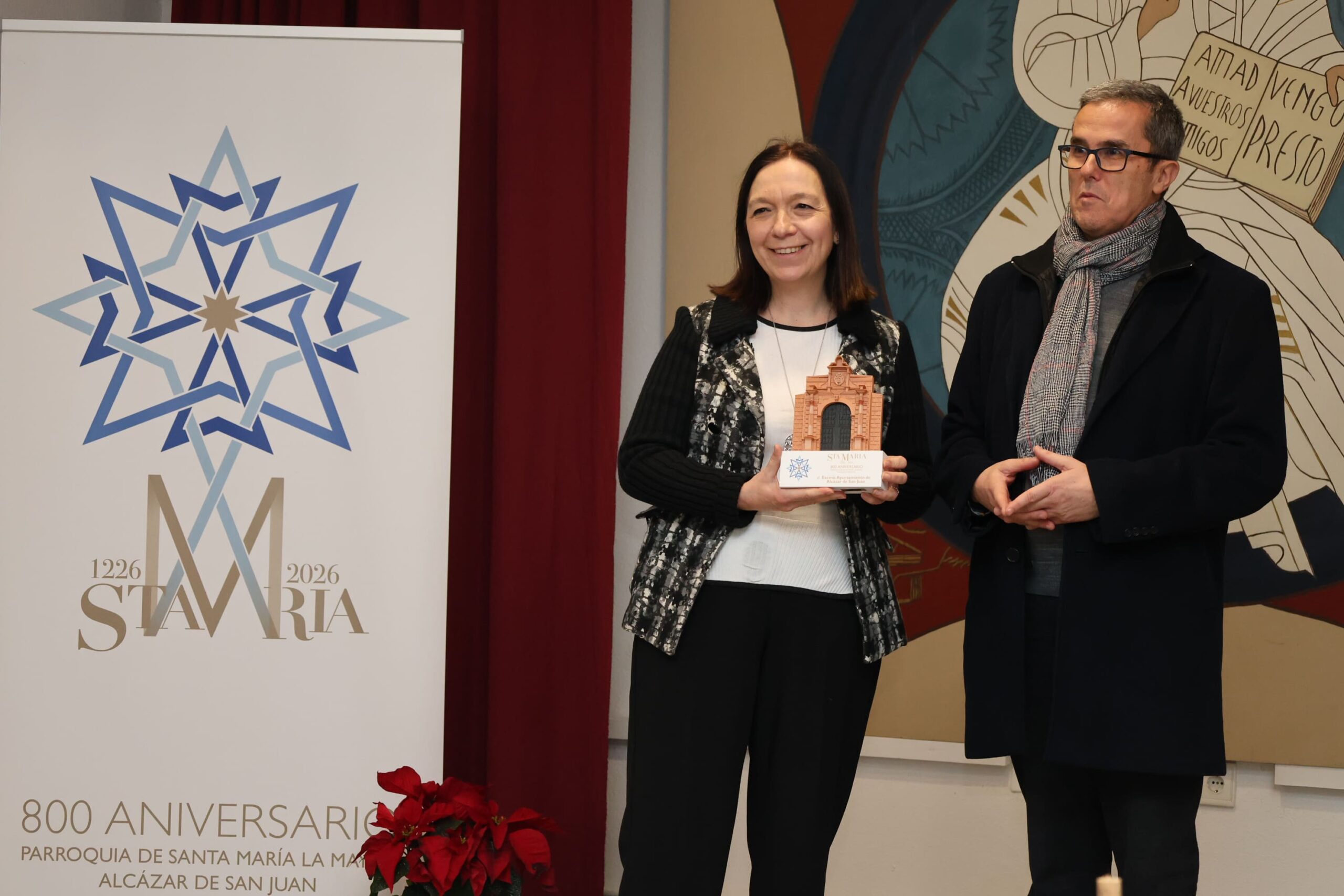 La alcaldesa de Alcázar de San Juan, Rosa Melchor, ha expresado su agradecimiento al obispo Abilio Martínez por presidir este inicio y ha felicitado al párroco y a todo su equipo por el trabajo previo realizado. Ha subrayado que «hablar de Santa María la Mayor y de estos 800 años es hablar de la historia misma de Alcázar de San Juan», recordando que la parroquia existía incluso antes de la Carta Puebla y ha sido testigo de hitos fundamentales como la llegada del ferrocarril o el bautismo de Miguel de Cervantes Saavedra, cuya partida se custodia en el templo.