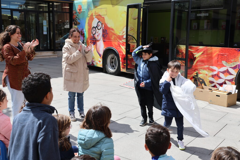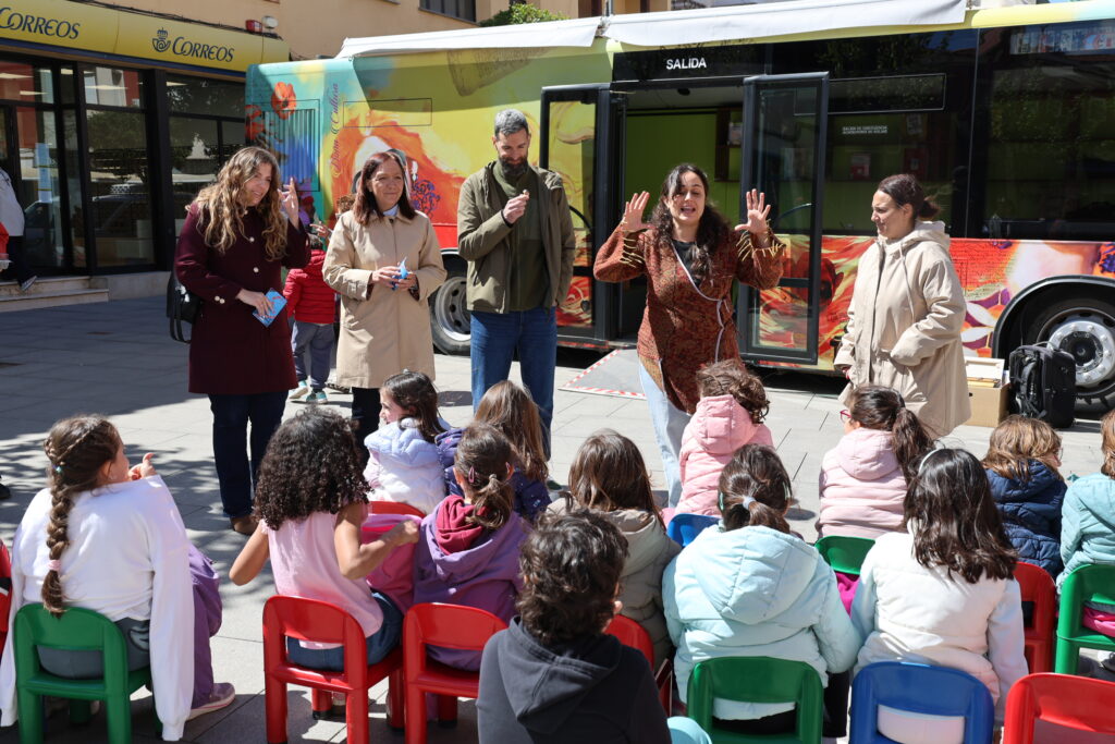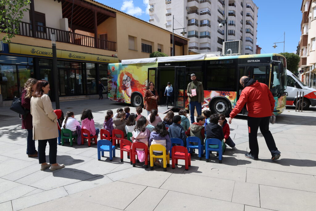 En el marco de esta programación, la Plaza de España ha acogido una de las jornadas de animación a la lectura dirigidas al alumnado de segundo curso de Educación Primaria. La propuesta se ha desarrollado como una experiencia inmersiva en la que los escolares han conocido el interior del autobús, participando posteriormente en juegos y dinámicas adaptadas a su edad.