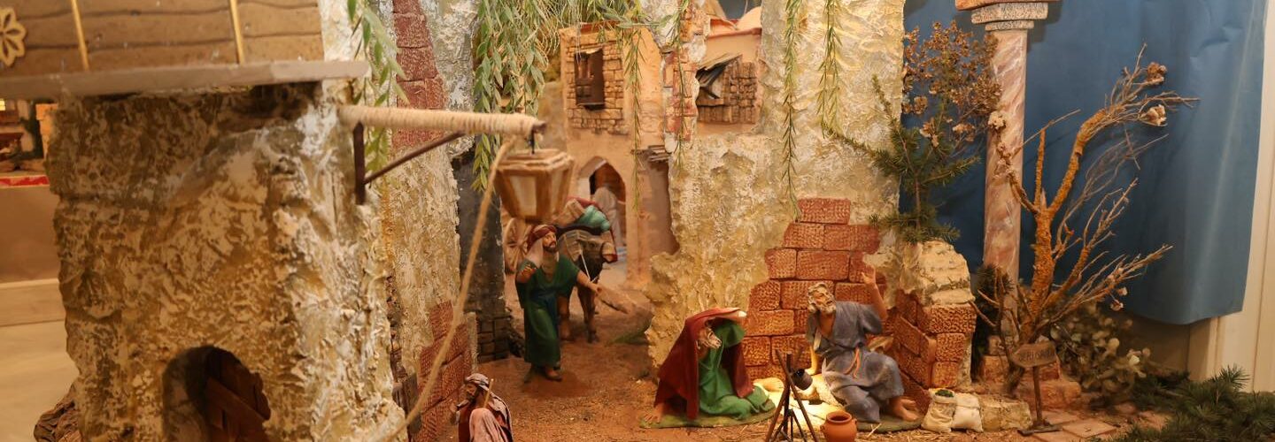 El Belén, realizado por la Asociación Belenista “Corazón de la Mancha”, mantiene su tradicional forma en U y ocupa más de 80 metros cuadrados de escenografía, incorporando este año 25 nuevas figuras dedicadas al pasaje de Egipto y a una renovada cabalgata de Reyes Magos. La edición 2025 se articula en torno al lema “Los tres secretos del nacimiento de Jesús”, ofreciendo un recorrido temático que profundiza en diferentes pasajes y simbolismos de la natividad.