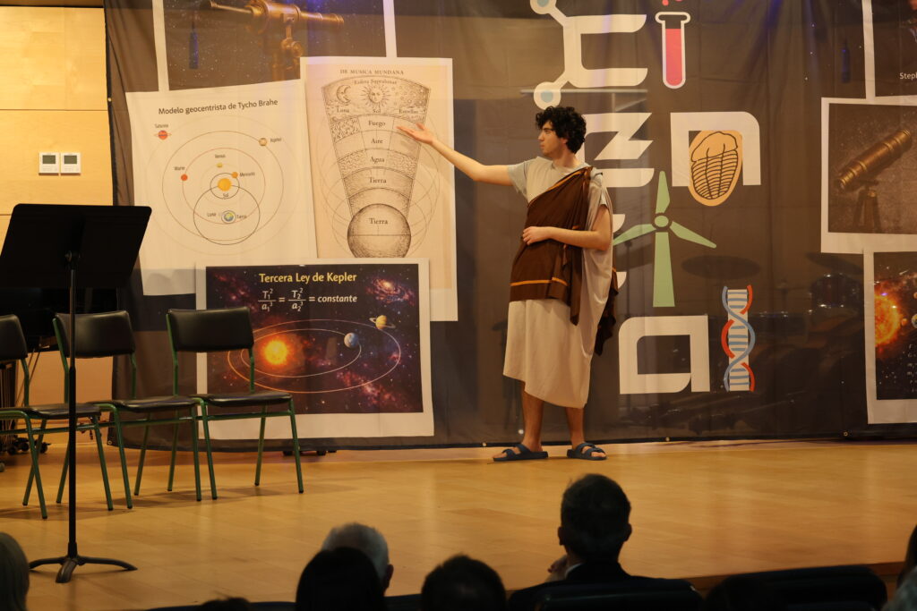 La inauguración, conducida por la periodista Betsabé Alhambra, ha reflejado el espíritu del propio Ciencial, situando a los jóvenes en el centro de la actividad. En este sentido, el alumnado ha protagonizado una representación teatral titulada «Y sin embargo, se mueve», escrita por María José García Lorente y dirigida por Ezequiel Ransanz, en la que, a través de personajes como Aristóteles, Galileo o Newton, se ha ofrecido una visión didáctica sobre la evolución del conocimiento científico y las distintas concepciones del sistema solar a lo largo de la historia.