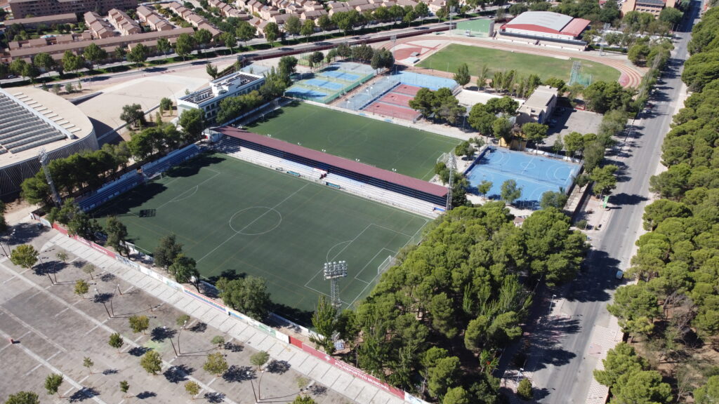Diferenciamos en distintas zonas: campos de fútbol, pista de atletismo, pistas al aire libre y pistas de tenis, pádel y frontón.