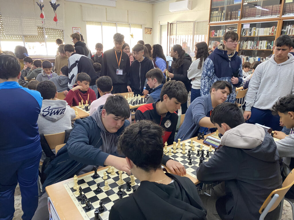 La biblioteca del IES Juan Bosco de Alcázar de San Juan ha acogido durante la mañana de este mes de abril la celebración del III Torneo de Ajedrez por Equipos Intercentros, una competición de carácter comarcal que continúa consolidándose año tras año y que en esta edición ha reunido a 54 estudiantes distribuidos en 18 equipos, procedentes de nueve centros educativos de Alcázar de San Juan y de municipios cercanos.