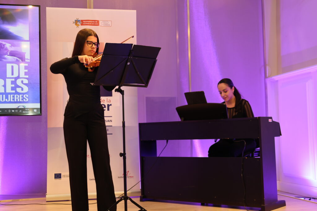 El acto institucional ha estado además aderezado con interpretaciones musicales a cargo de alumnado y profesorado de la Escuela Municipal de Música de Alcázar de San Juan. La primera intervención musical ha sido interpretada al piano por Elena Ruiz de la Hermosa, quien ha ofrecido la pieza «Arabescos», de Burgmüller, mientras que el evento se ha cerrado con la interpretación de «Moon River», de Henry Mancini, a cargo de Carla Angulo al violín junto a la profesora de piano Ana Pilar.