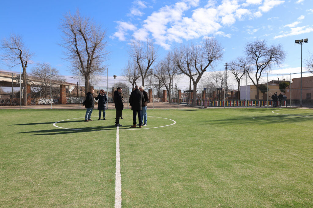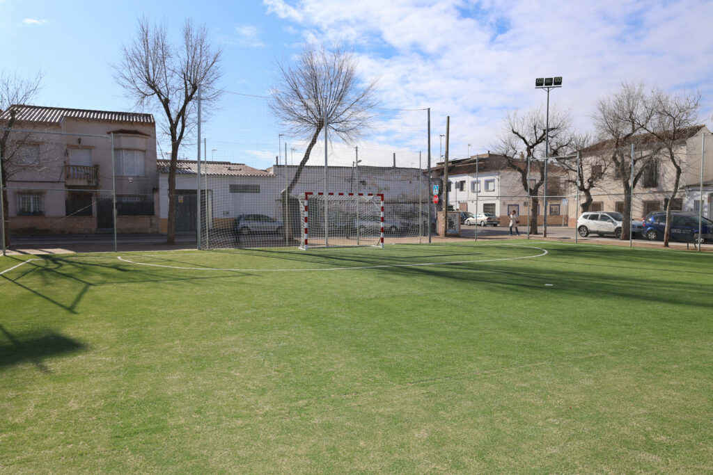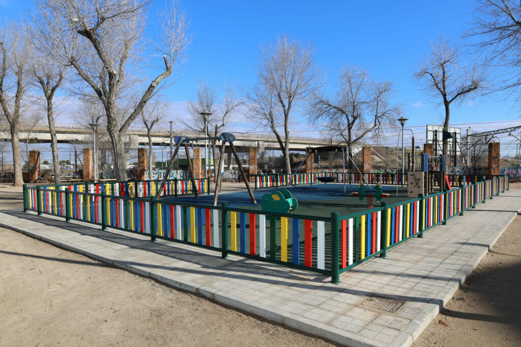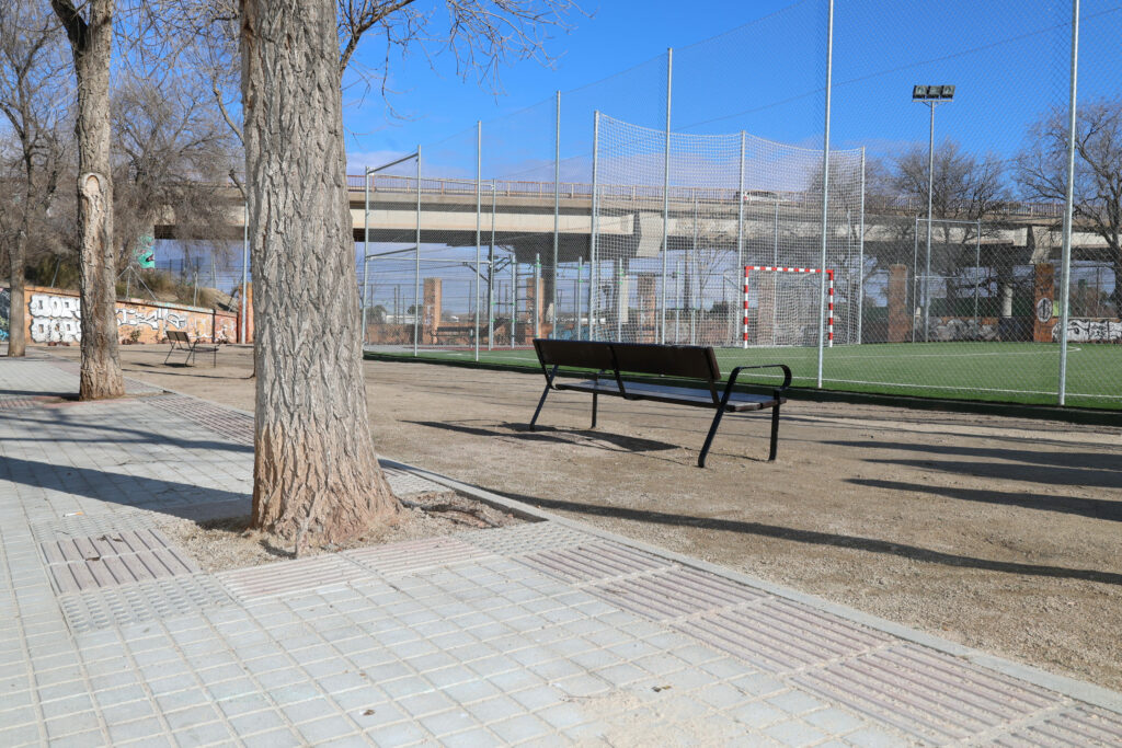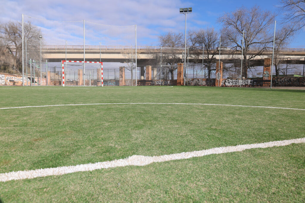 El parque se ha dotado de una zona deportiva con pista de césped artificial, que permite la práctica de distintas actividades físicas. Junto a este espacio, se ha creado una zona de ocio equipada con mesas de picnic, ubicada junto al área de juegos infantiles, que ha sido vallada y perimetrada para garantizar la seguridad de niños y niñas tras la retirada de la valla exterior y su proximidad a la calzada.