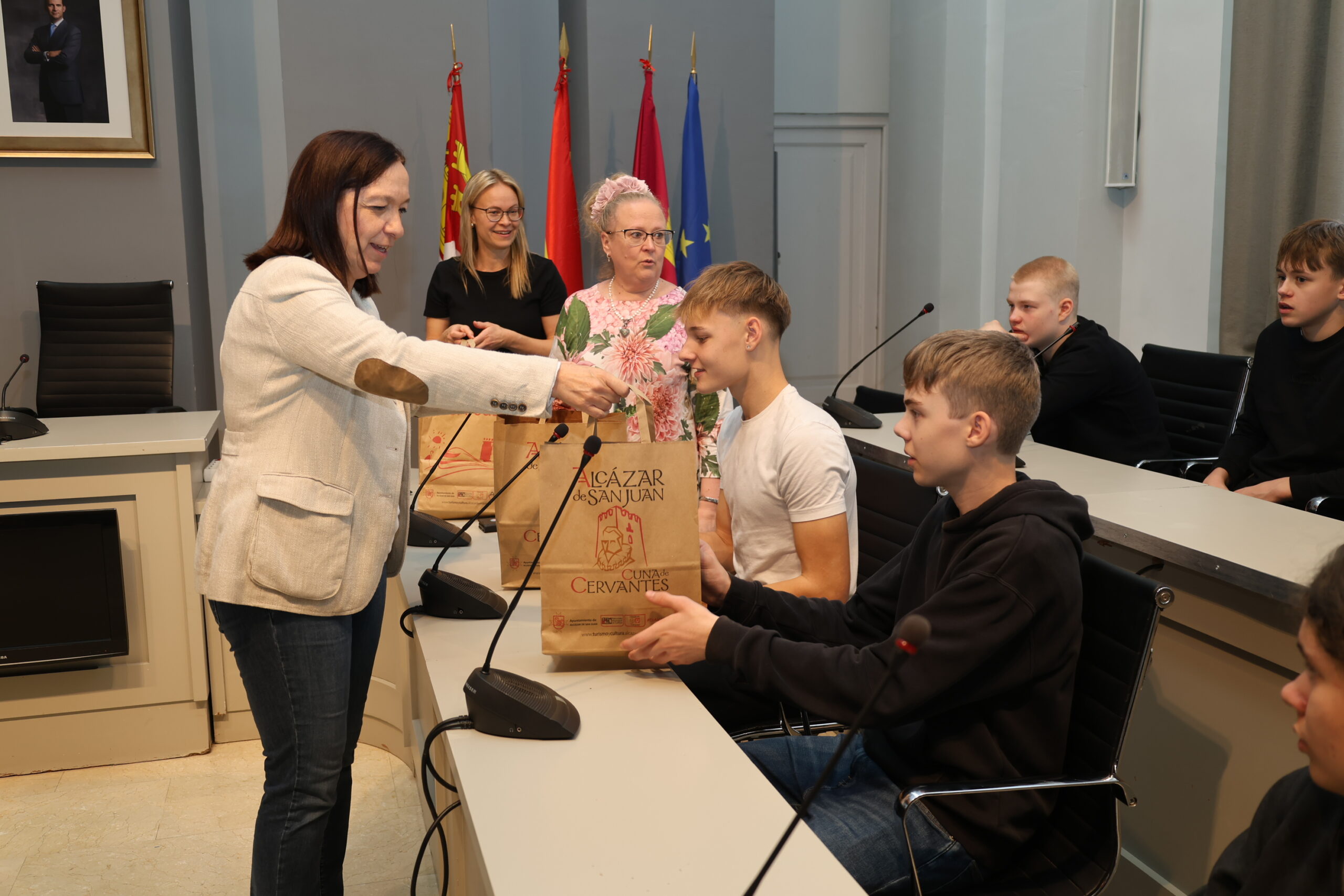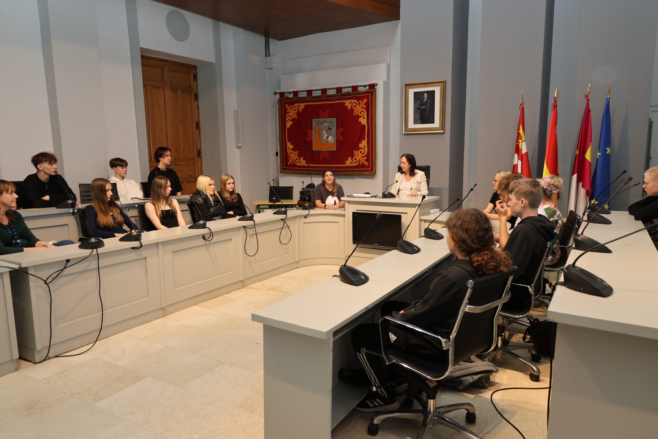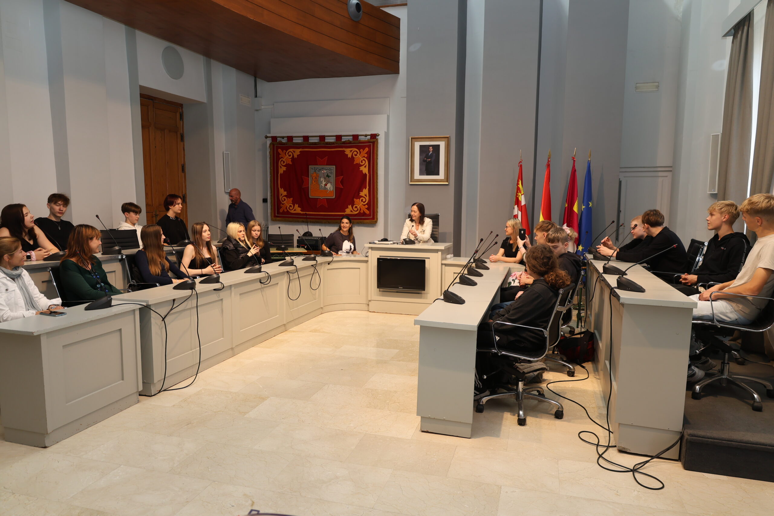 La alcaldesa de Alcázar de San Juan, Rosa Melchor, ha recibido en el Ayuntamiento a un grupo de estudiantes y profesoras procedentes de Lohja (Finlandia), dentro del programa de intercambio europeo Erasmus+ que desarrolla el Instituto de Educación Secundaria María Zambrano. Durante la visita al Ayuntamiento, han podido compartir impresiones de su llegada a la localidad con la primera edil, quien les ha invitado a disfrutar de nuestro patrimonio y nuestra cultura. La directora del centro educativo, Sagrario García, así como las coordinadoras del programa en el centro y profesoras de los alumnos en Lohja se han sumado a la visita acompañando a los alumnos y alumnas durante la mañana.