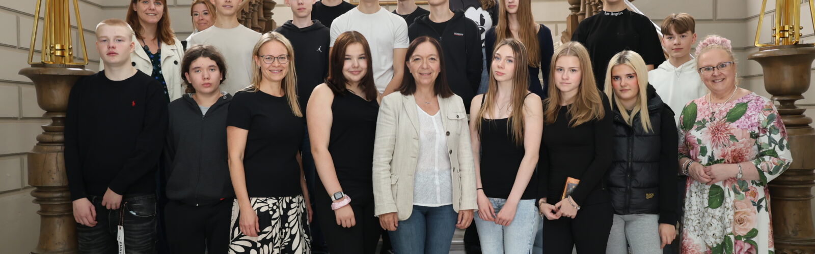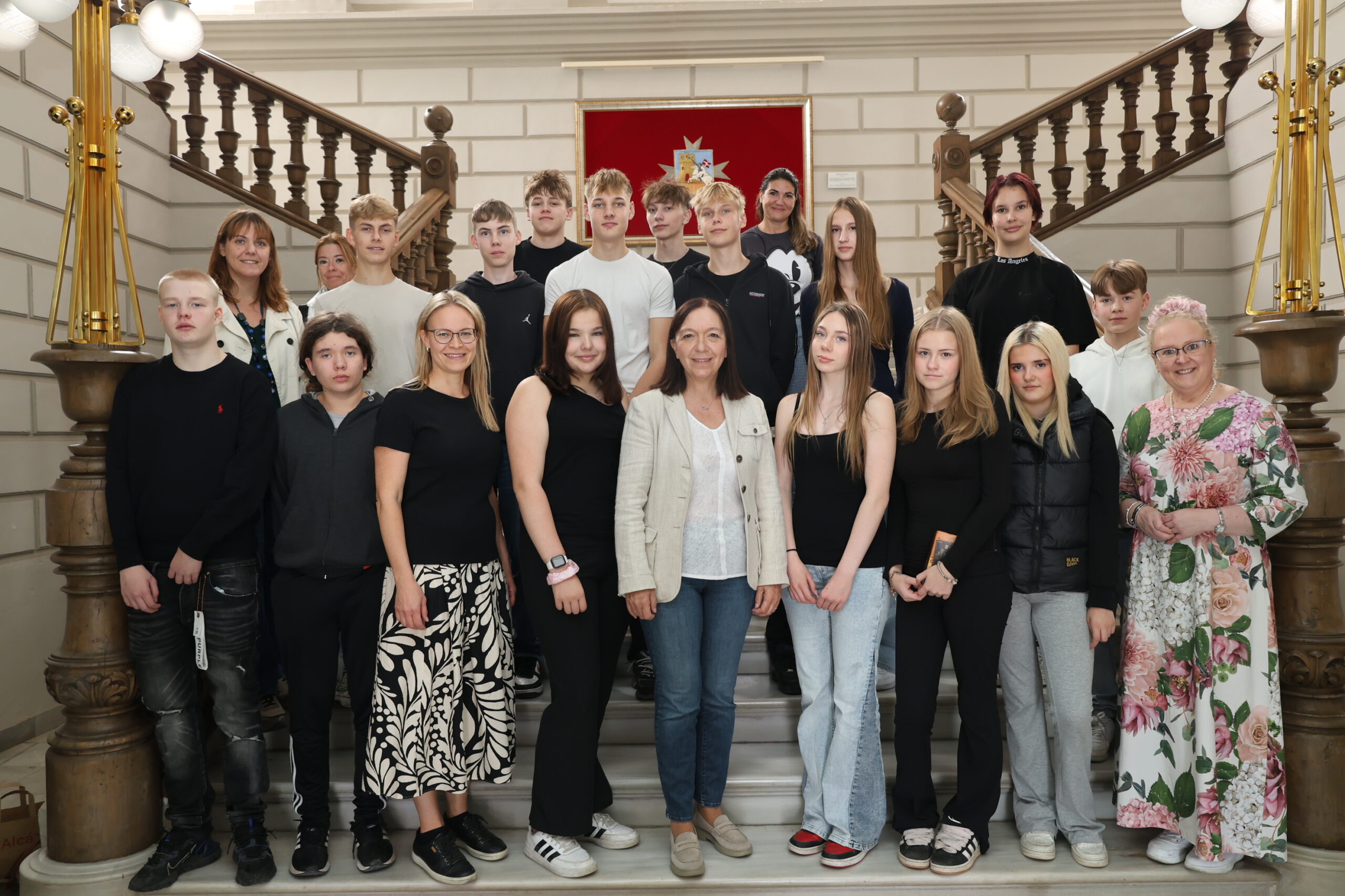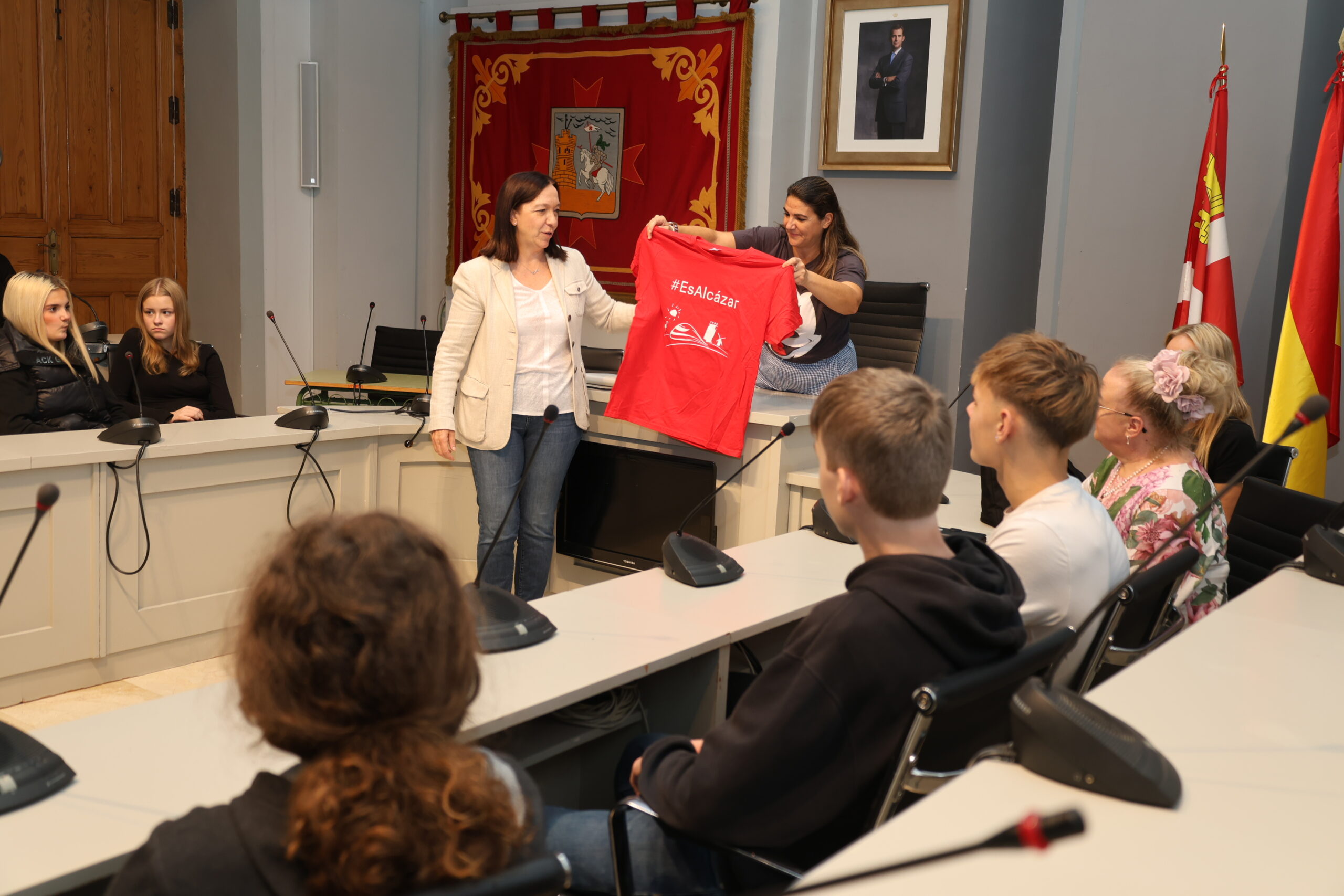 La alcaldesa de Alcázar de San Juan, Rosa Melchor, ha recibido en el Ayuntamiento a un grupo de estudiantes y profesoras procedentes de Lohja (Finlandia), dentro del programa de intercambio europeo Erasmus+ que desarrolla el Instituto de Educación Secundaria María Zambrano. Durante la visita al Ayuntamiento, han podido compartir impresiones de su llegada a la localidad con la primera edil, quien les ha invitado a disfrutar de nuestro patrimonio y nuestra cultura. La directora del centro educativo, Sagrario García, así como las coordinadoras del programa en el centro y profesoras de los alumnos en Lohja se han sumado a la visita acompañando a los alumnos y alumnas durante la mañana.