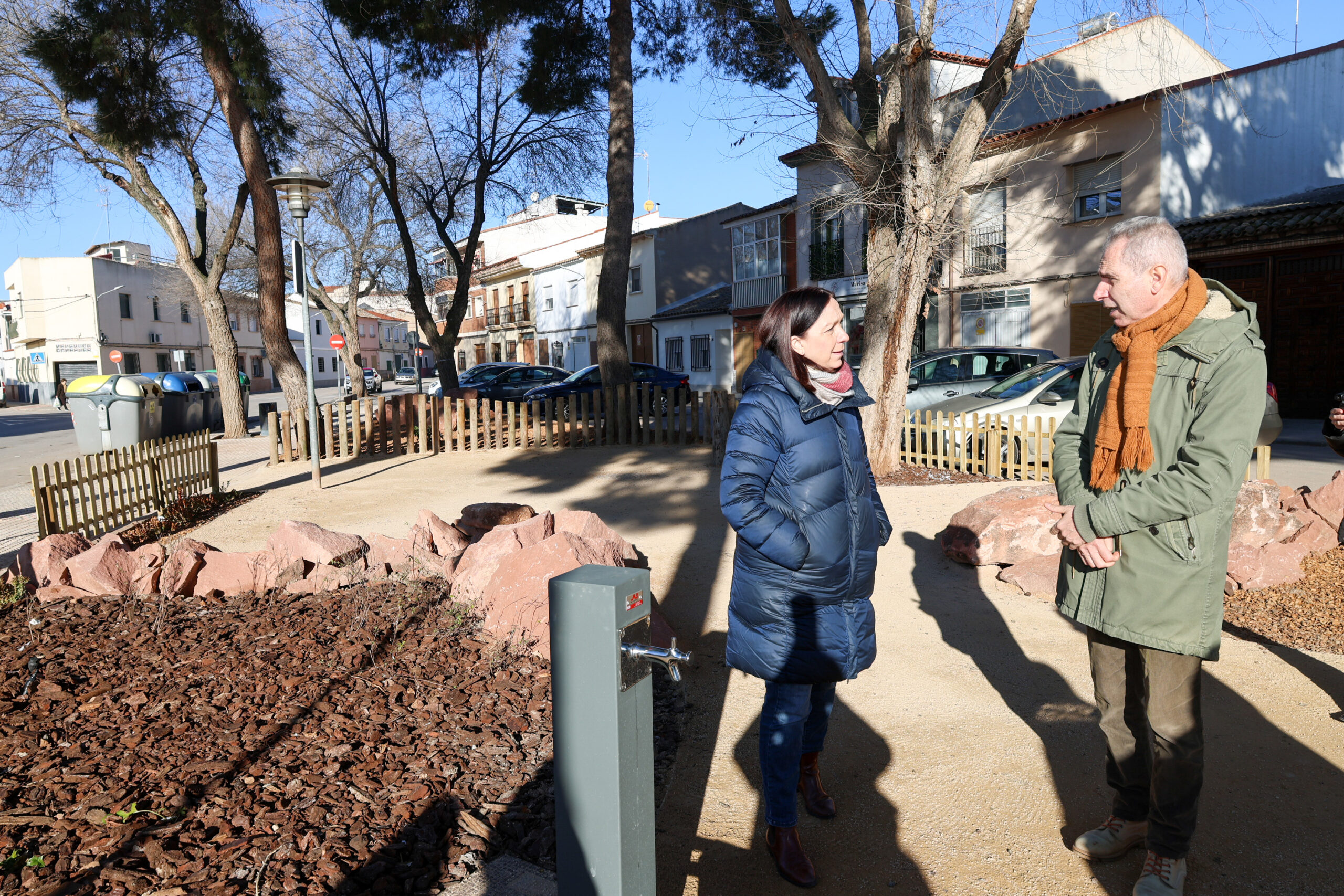 La alcaldesa ha puesto en valor también el carácter sostenible de la actuación, ya que las zonas ajardinadas se han preparado utilizando materiales naturales reutilizados, como corteza de pino y cáscara de almendra, junto con rocallas, contribuyendo así al respeto medioambiental incluso en el propio proceso constructivo.