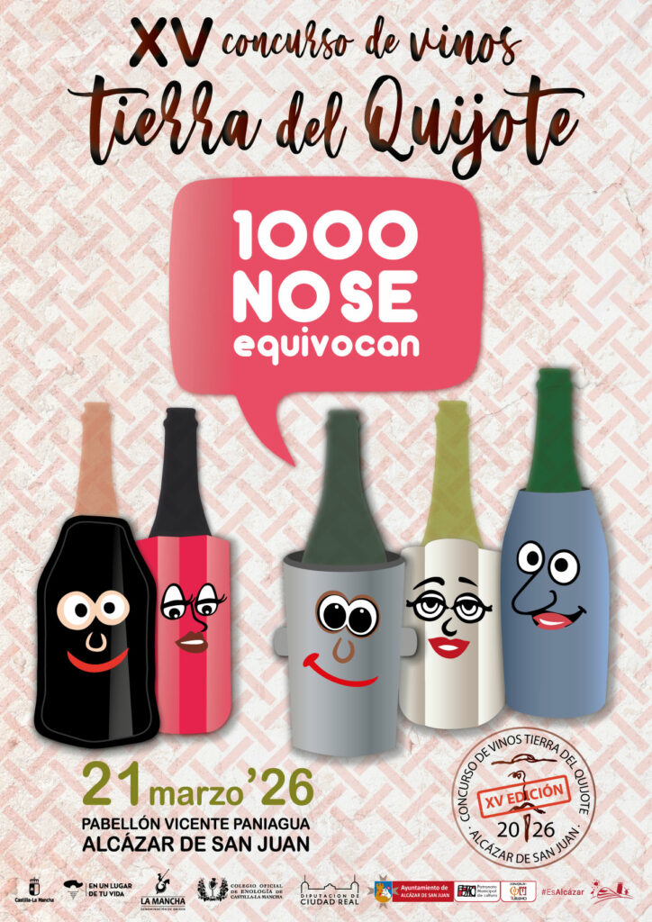 El XV Concurso Regional de Vinos Tierra del Quijote “1000 No se equivocan” regresa el próximo 21 de marzo de 2026 al Pabellón Vicente Paniagua de Alcázar de San Juan, donde, a partir de las 12:00 horas, un millar de catadores ejercerán como jurado popular en una cita que, tras quince ediciones, se ha consolidado como uno de los principales escaparates del potencial vitivinícola regional. Organizados en grupos de hasta diez integrantes, los mil catadores degustarán y puntuarán las seis categorías de vino establecidas por la organización, comunes para todos los participantes.