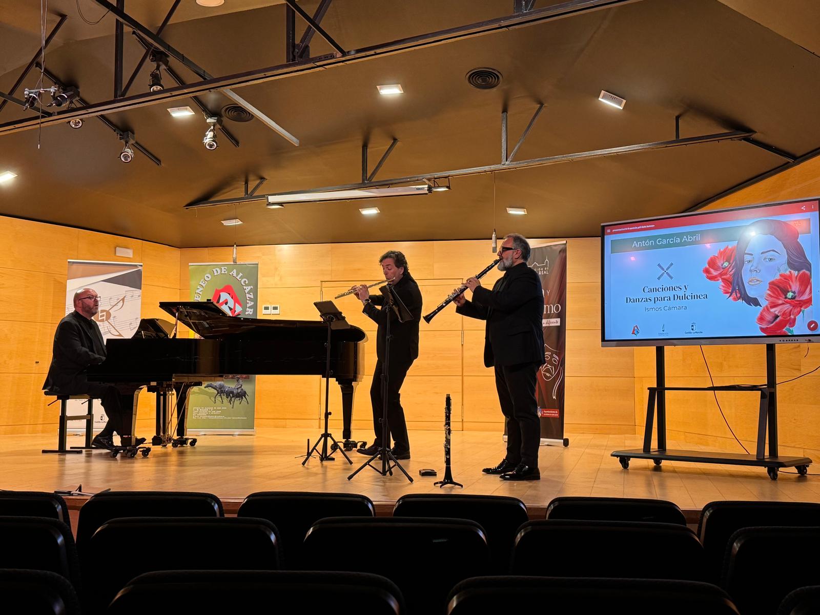 El Conservatorio Profesional de Música de Alcázar de San Juan-Campo de Criptana fue el sábado escenario de la presentación del disco ‘Canciones y Danzas para Dulcinea’, una producción impulsada por el Ateneo de Alcázar y el Grupo Musical Ismos que rinde homenaje al compositor Antón García Abril y a la figura literaria de Dulcinea, símbolo de la mujer manchega.