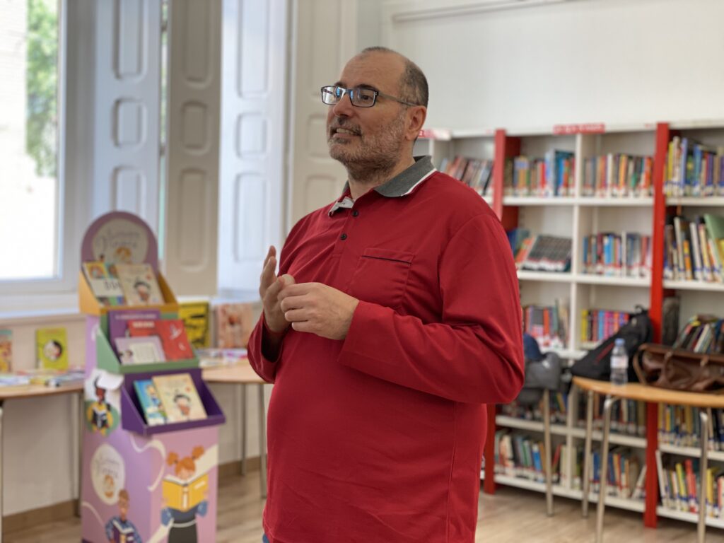 La sesión ha girado en torno a la obra «Entre sombras y el circo ambulante», primer volumen de la colección «Entre sombras», una historia dirigida a lectores a partir de ocho años en la que Mateo presencia la desaparición de su amiga Daniela en el interior de un misterioso circo y, al intentar rescatarla, se adentra en un mundo de ultratumba donde entra en contacto con la denominada Resistencia, un grupo de personajes singulares que luchan contra un poder oscuro.