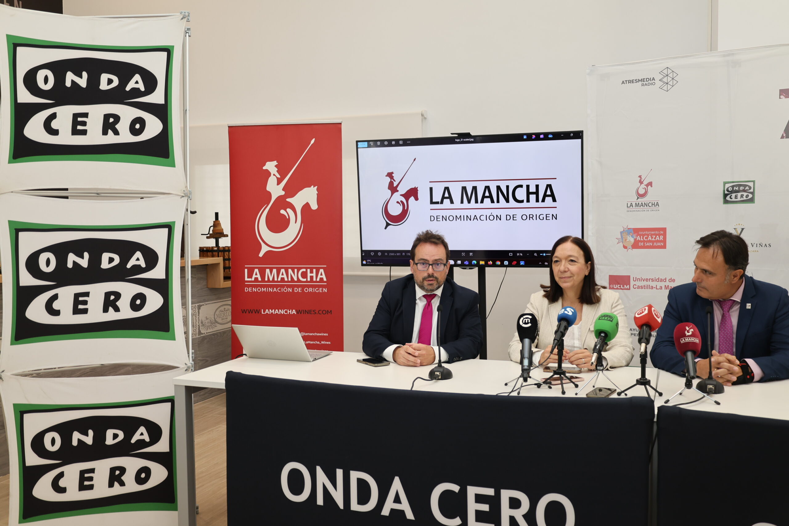 La alcaldesa Rosa Melchor ha acompañado en la presentación al presidente de la D.O. La Mancha, Carlos David Bonilla, y al director de Onda Cero en Ciudad Real, Javier Ruiz, quienes han detallado la programación y el alcance de la séptima edición de la Fiesta de la Vendimia, que Ruiz ha calificado como “muy importante” para todo el grupo Atresmedia en toda España, rebasando las barreras de Ciudad Real y Castilla-La Mancha.