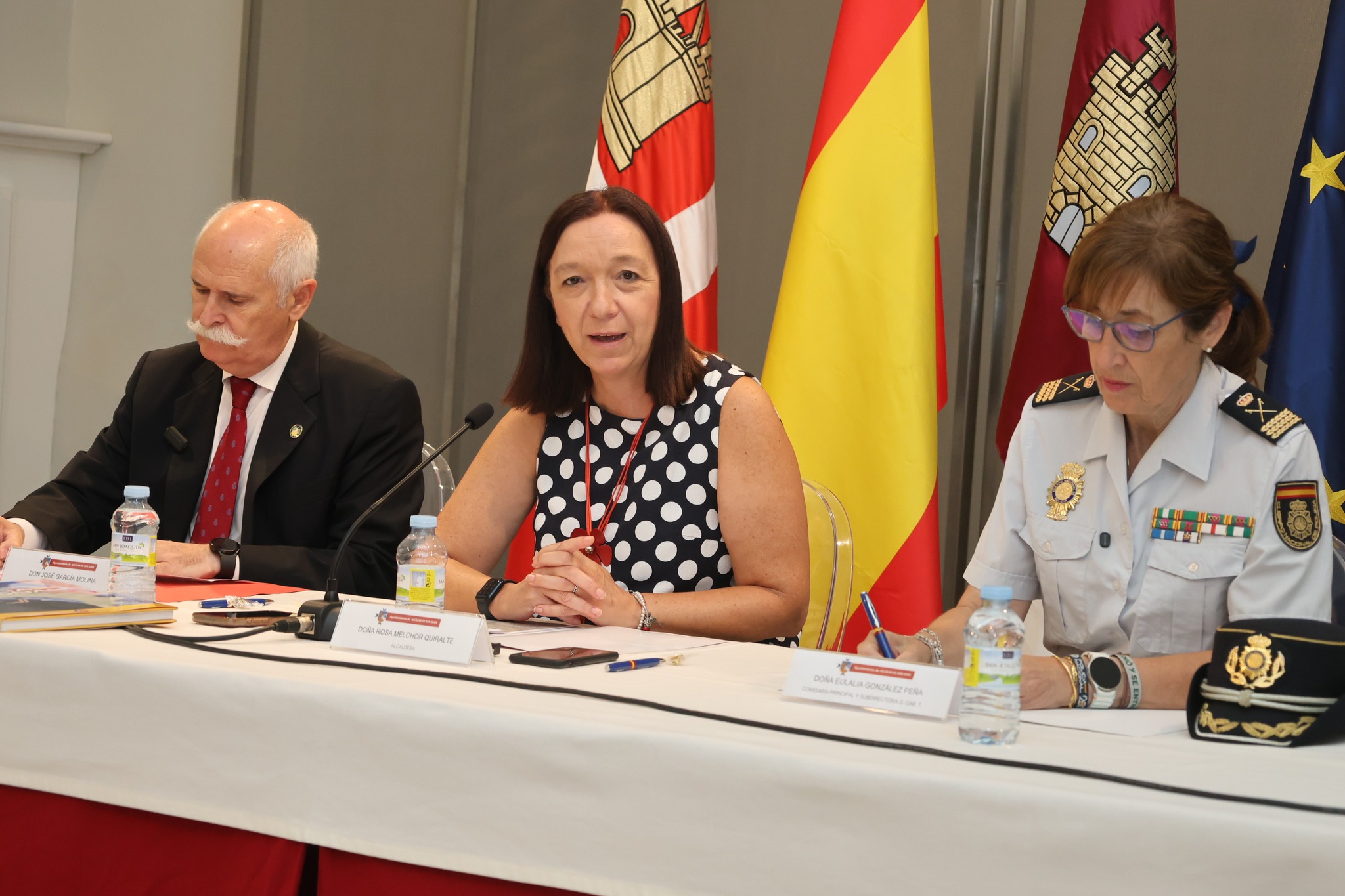 La sesión ha sido inaugurada por la alcaldesa de Alcázar de San Juan, Rosa Melchor, quien ha estado acompañada en la mesa inaugural por la comisaria principal y subdirectora del gabinete técnico de Policía nacional, Eulalia González Peña, y por el doctor José García Molina de la Fundación Policía Española. En el acto han estado también presentes miembros de la corporación municipal, entre los que ha estado la concejala de Seguridad Ciudadana, Amparo Bremard, Ana Isabel Abengózar y José Antonio Navarro; la delegada de Hacienda y Administraciones Públicas en Ciudad Real, Inmaculada Jiménez; la vicepresidenta de la Diputación Provincial de Ciudad Real, María Jesús Pelayo, así como distintos responsables de Policía Nacional y Policía Local, todo en un ambiente solemne y de reconocimiento a la labor de esta institución bicentenaria.