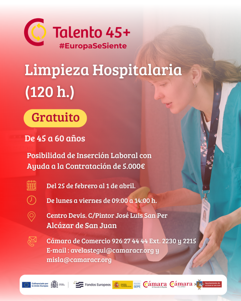 Curso de LIMPIEZA HOSPITALARIA de 120 h. (destinado a personas no ocupadas de 45 a 60 años)