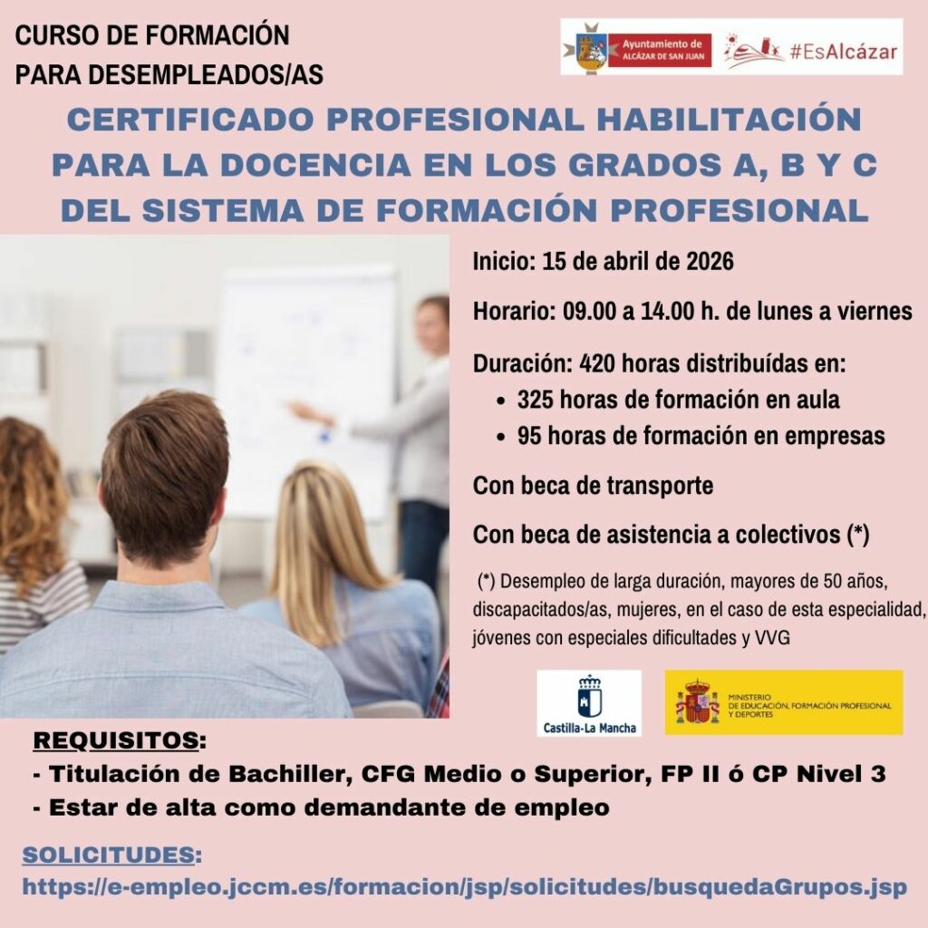 CURSOS DE FORMACIÓN EN EL ÁMBITO LABORAL DIRIGIDOS PRIORITARIAMENTE A PERSONAS DESEMPLEADAS (CERTIFICADOS PROFESIONALES)