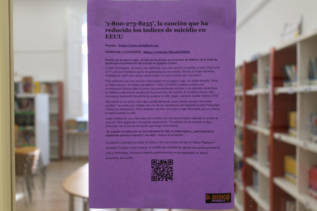 Durante el acto, Pablo Blanco, profesor del IES Juan Bosco, ha destacado el valor educativo y social de la muestra, motivo por el que el instituto alcazareño decidió contactar con El Batracio Amarillo, una asociación que edita un fanzine en Málaga y cuyo trabajo se alinea perfectamente con la programación del Mes de la Salud Mental, así como con la manera en que el centro educativo está trabajando, desde el curso pasado, en abordar el tema del suicidio y las conductas autolíticas.