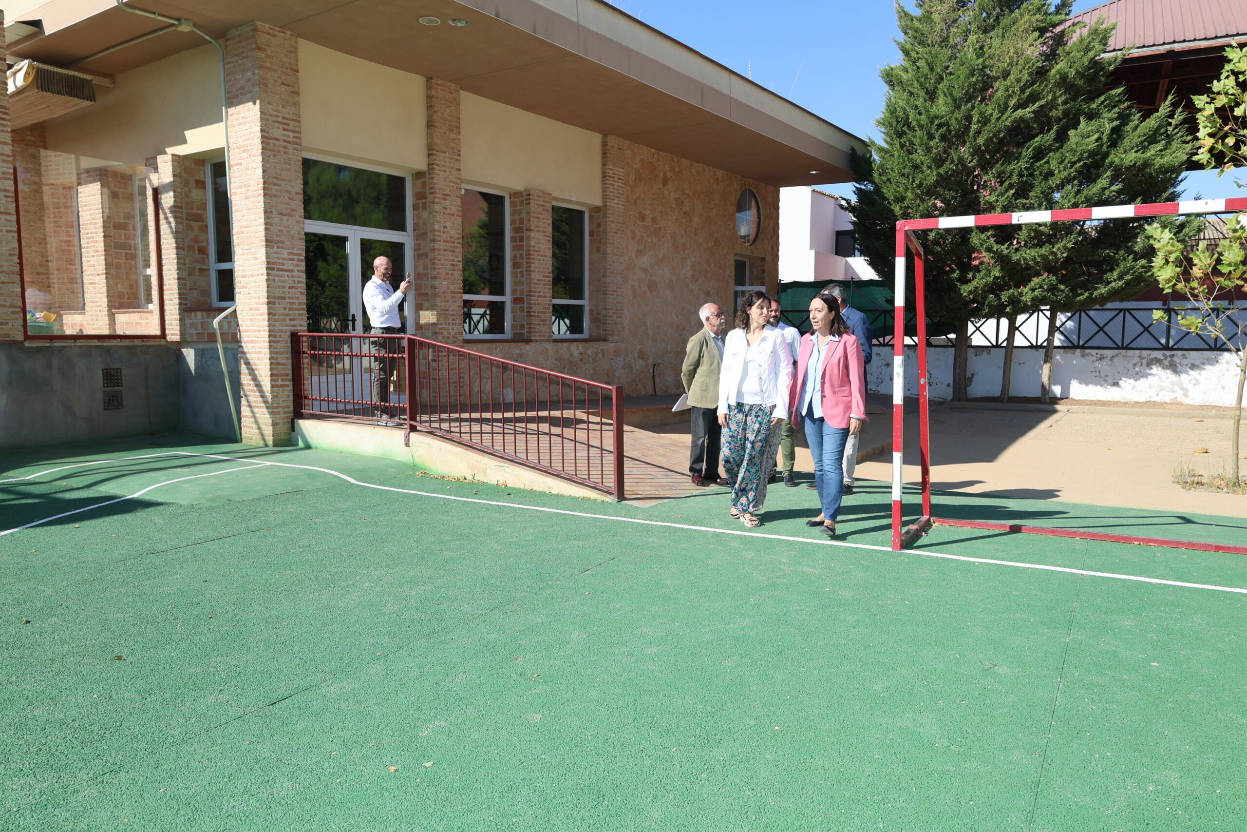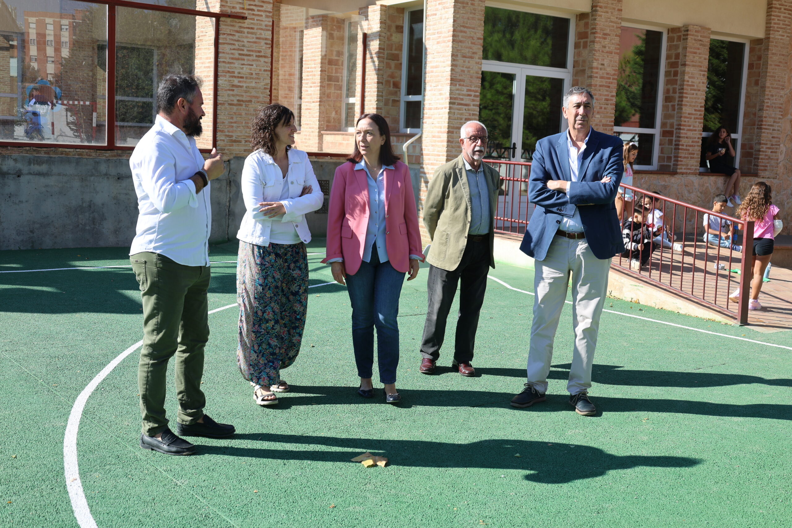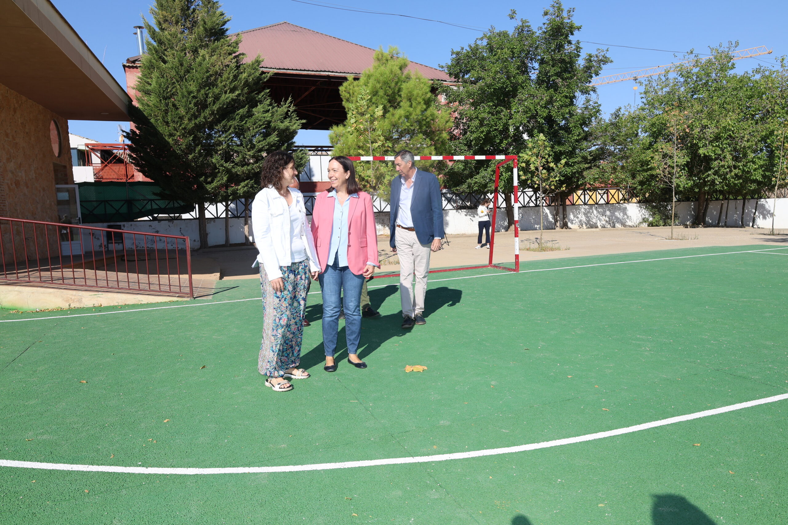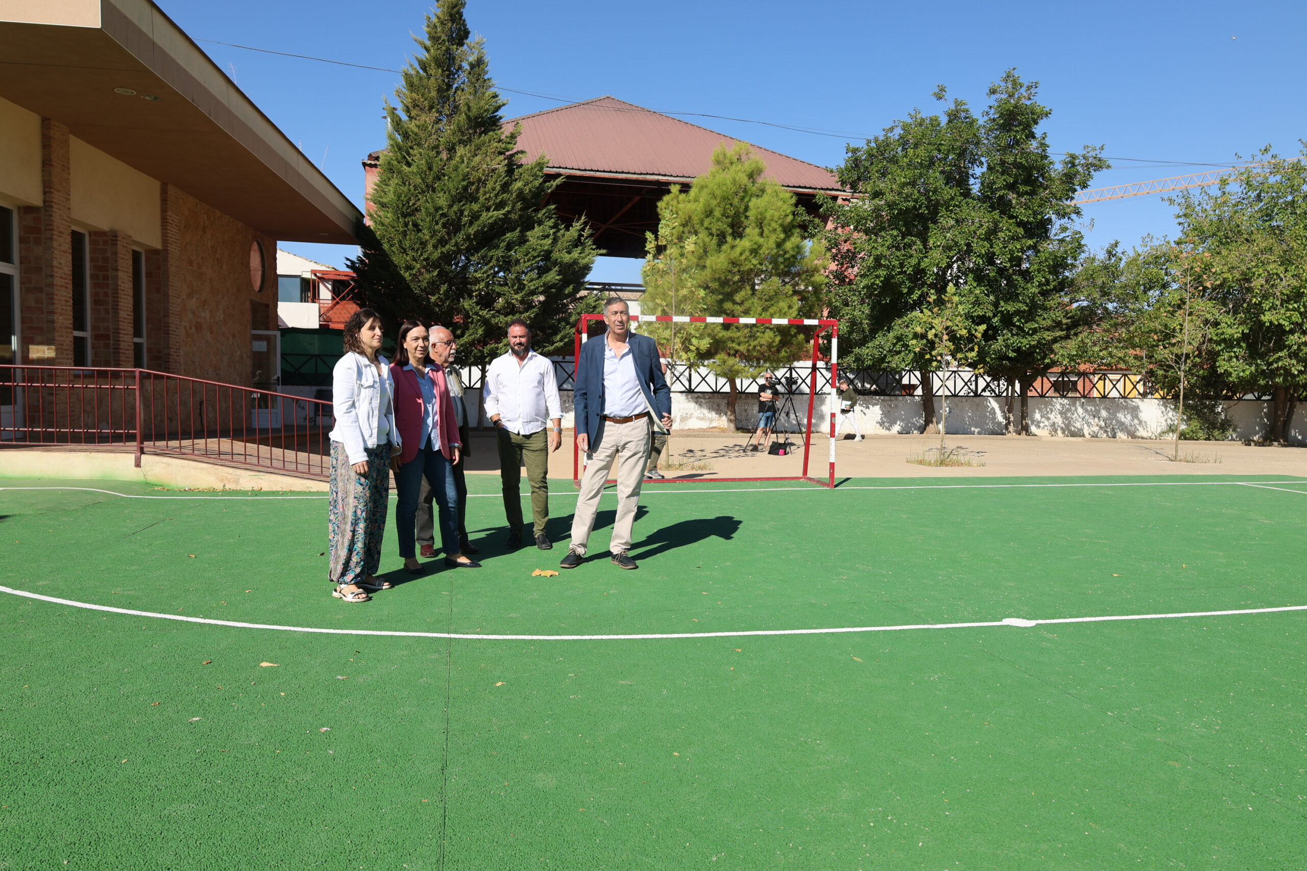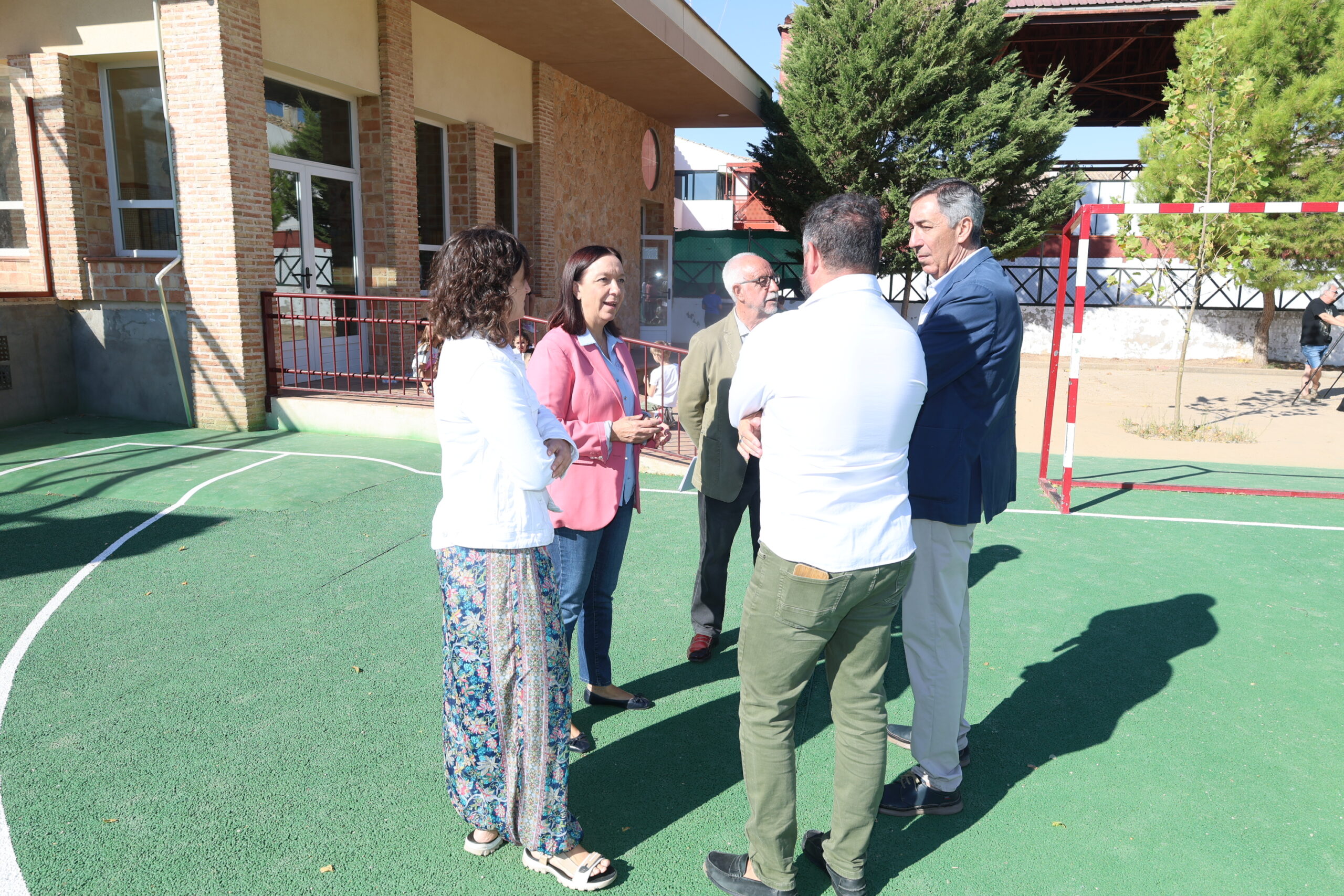 Las autoridades han visitado el resultado de la actuación realizada en el CEIP Santa Clara, que ha consistido en la renovación completa de una de las dos pistas deportivas, la adecuación y pintado de la otra, así como la mejora del vallado exterior en el área deportiva y de recreo que linda con la calle Clavileño.
