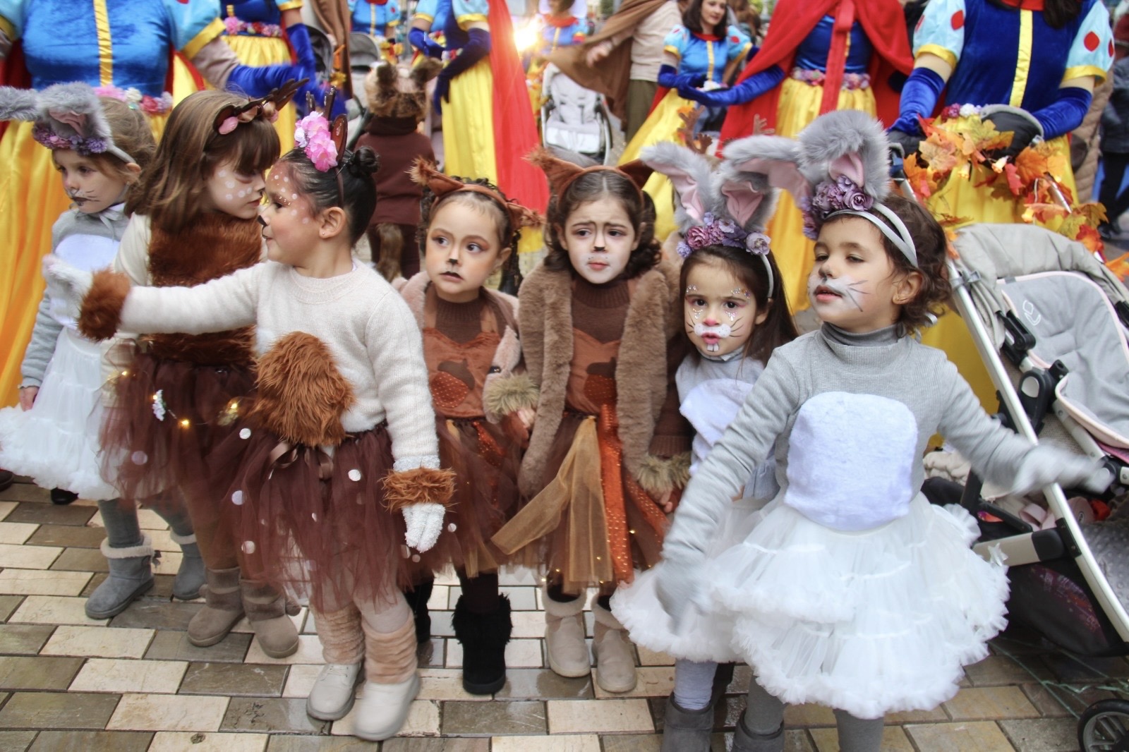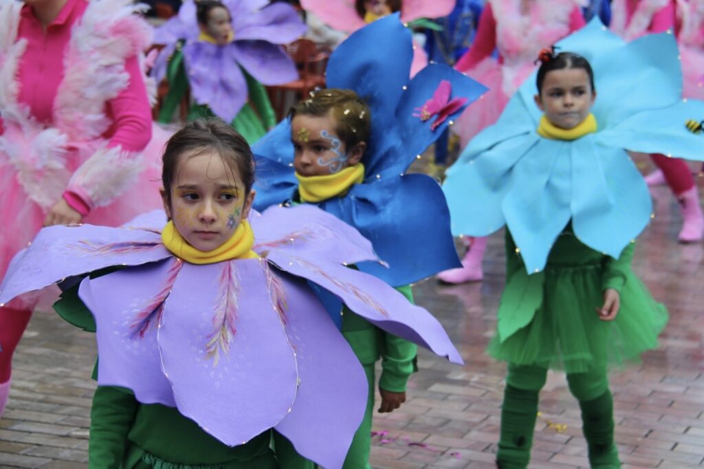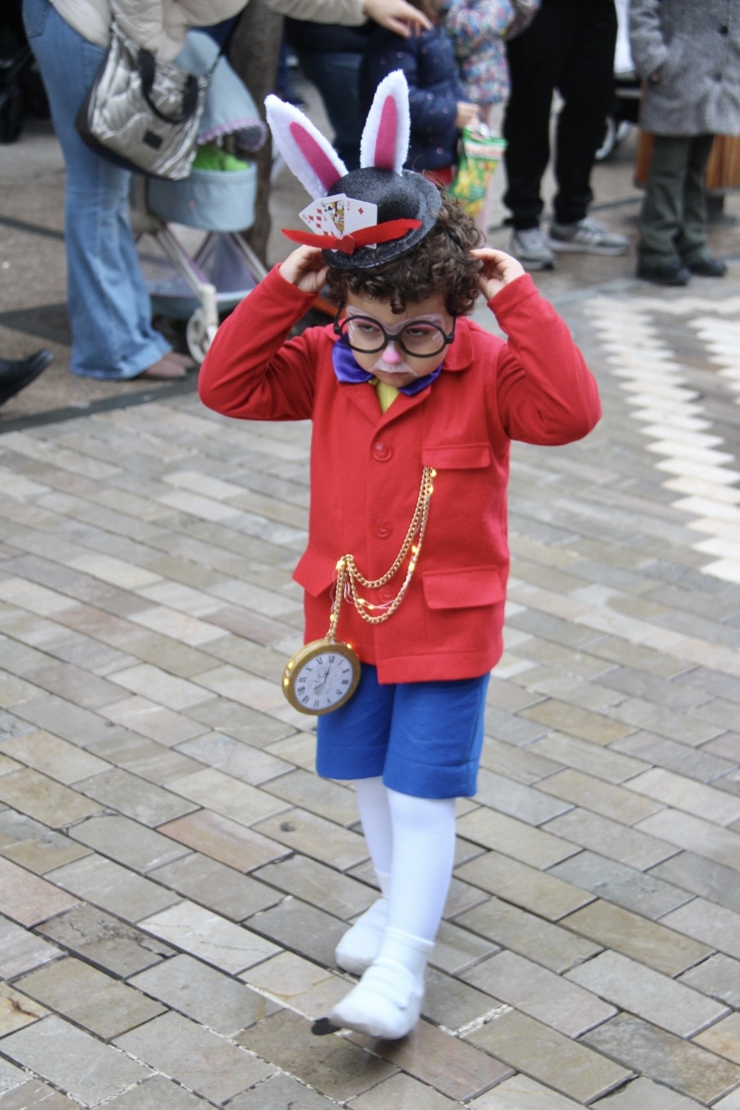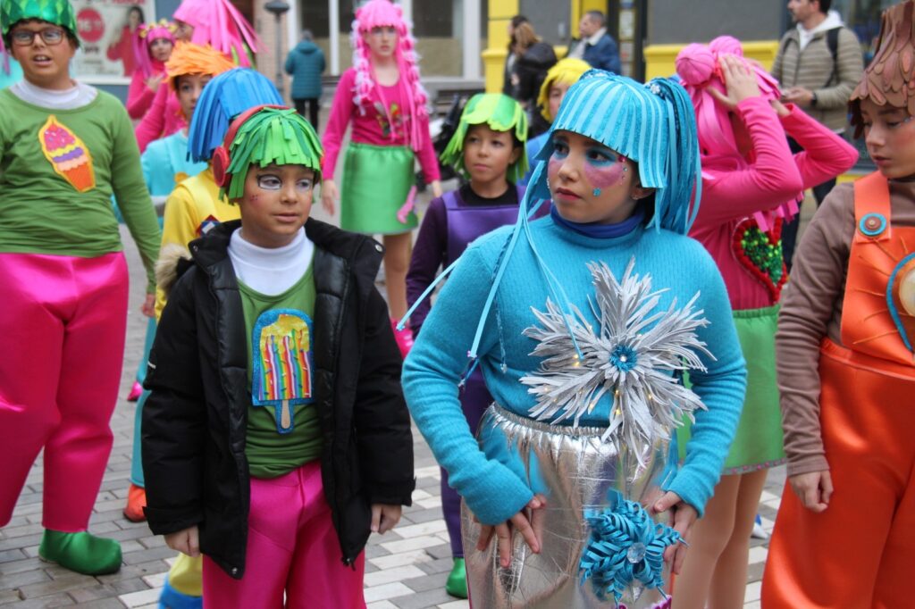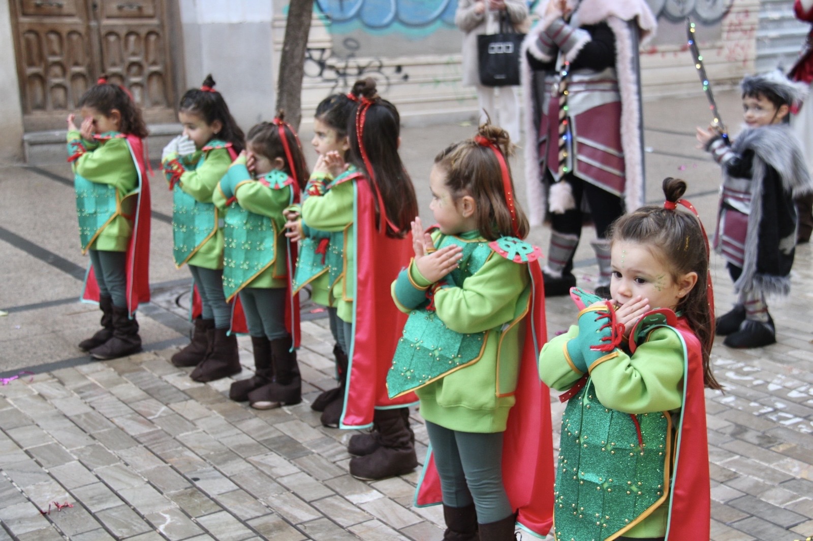En cabeza la Obispilla, Clara Huerta, alumna de la SAFA, que lideró el desfile ataviada con la vistosa capa roja. A continuación, los distintos grupos escolares, cada uno con una propuesta temática diferente, desbordando imaginación y trabajo colectivo. Entre los montajes, se pudieron ver juguetes salidos de un colorido baúl, soldados de plomo, vestidos florales, nubes de colores, perritos rosas con tutús, criaturas fantásticas, Alicia en el País de las Maravillas, la noche estrellada de Van Gogh, dragones chinos, personajes clásicos de la literatura infantil, guerreros y un largo etcétera. Todo ello con la música de la charanga “Deskaraos” y la animación del numeroso público que abarrotó el centro de la ciudad, a pesar de las bajas temperaturas.