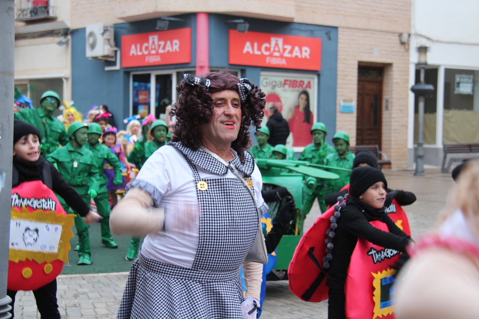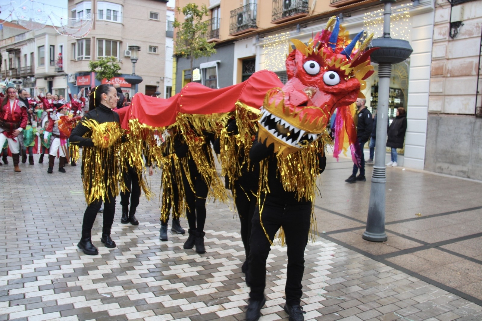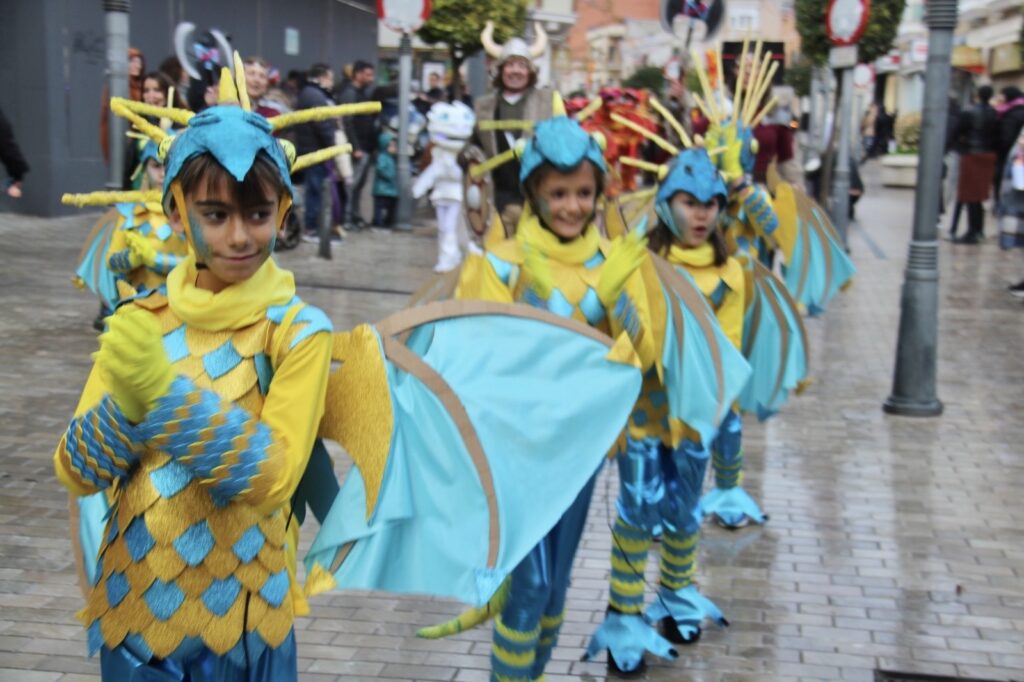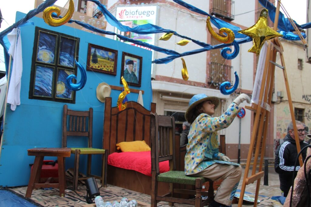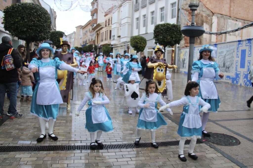 En cabeza la Obispilla, Clara Huerta, alumna de la SAFA, que lideró el desfile ataviada con la vistosa capa roja. A continuación, los distintos grupos escolares, cada uno con una propuesta temática diferente, desbordando imaginación y trabajo colectivo. Entre los montajes, se pudieron ver juguetes salidos de un colorido baúl, soldados de plomo, vestidos florales, nubes de colores, perritos rosas con tutús, criaturas fantásticas, Alicia en el País de las Maravillas, la noche estrellada de Van Gogh, dragones chinos, personajes clásicos de la literatura infantil, guerreros y un largo etcétera. Todo ello con la música de la charanga “Deskaraos” y la animación del numeroso público que abarrotó el centro de la ciudad, a pesar de las bajas temperaturas.