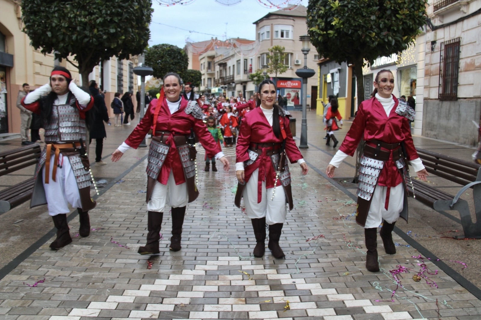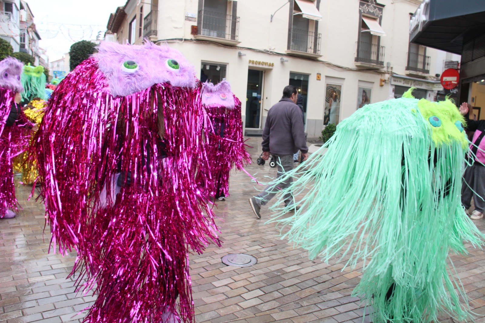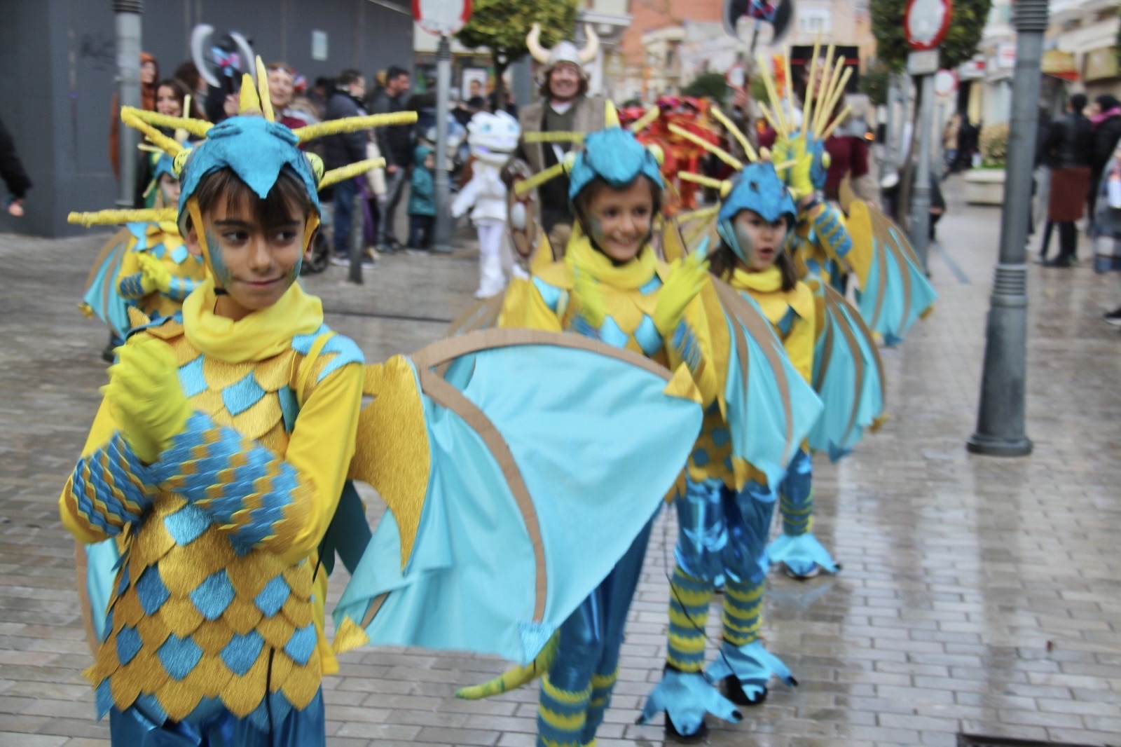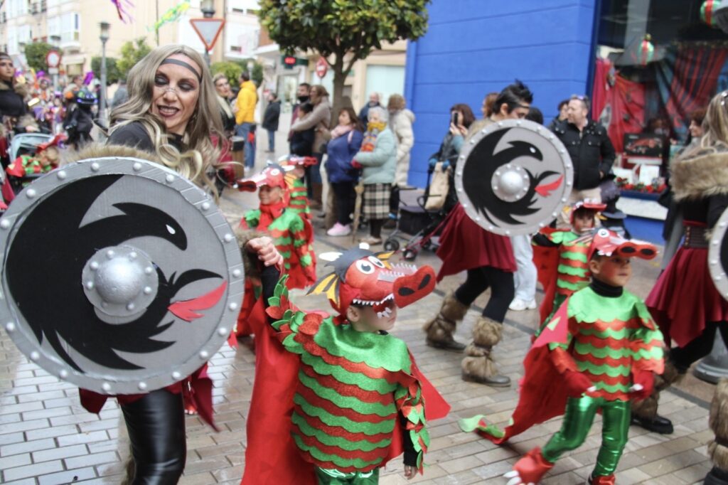 En cabeza la Obispilla, Clara Huerta, alumna de la SAFA, que lideró el desfile ataviada con la vistosa capa roja. A continuación, los distintos grupos escolares, cada uno con una propuesta temática diferente, desbordando imaginación y trabajo colectivo. Entre los montajes, se pudieron ver juguetes salidos de un colorido baúl, soldados de plomo, vestidos florales, nubes de colores, perritos rosas con tutús, criaturas fantásticas, Alicia en el País de las Maravillas, la noche estrellada de Van Gogh, dragones chinos, personajes clásicos de la literatura infantil, guerreros y un largo etcétera. Todo ello con la música de la charanga “Deskaraos” y la animación del numeroso público que abarrotó el centro de la ciudad, a pesar de las bajas temperaturas.