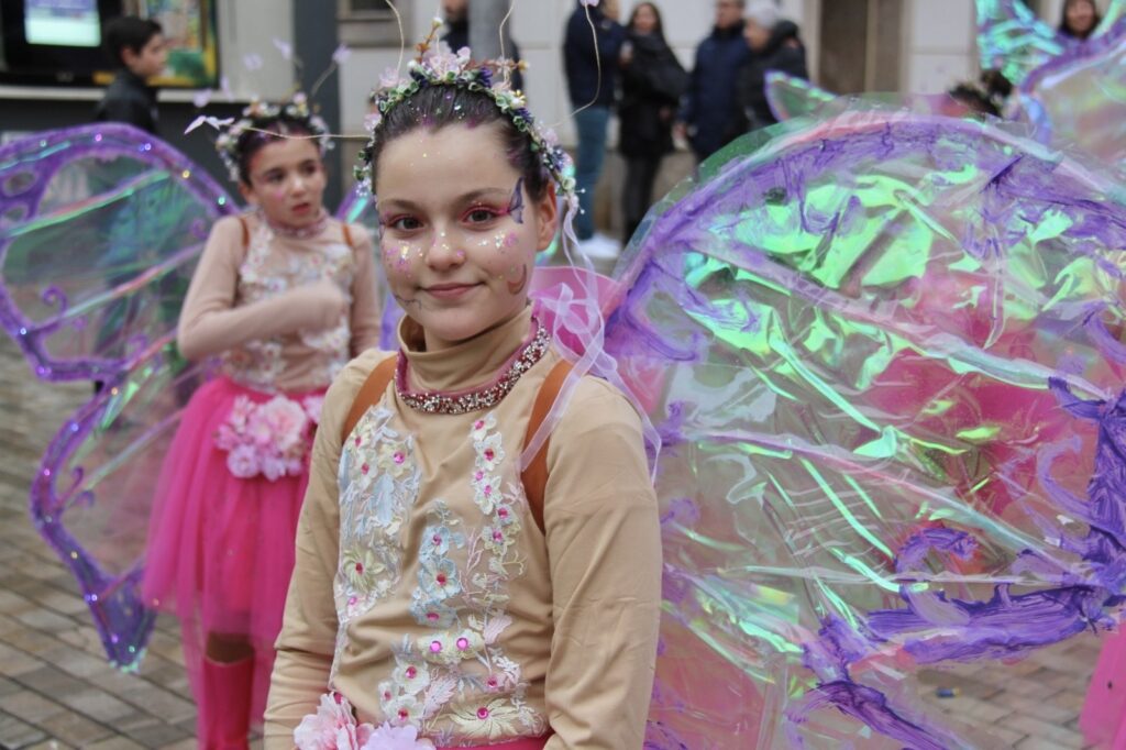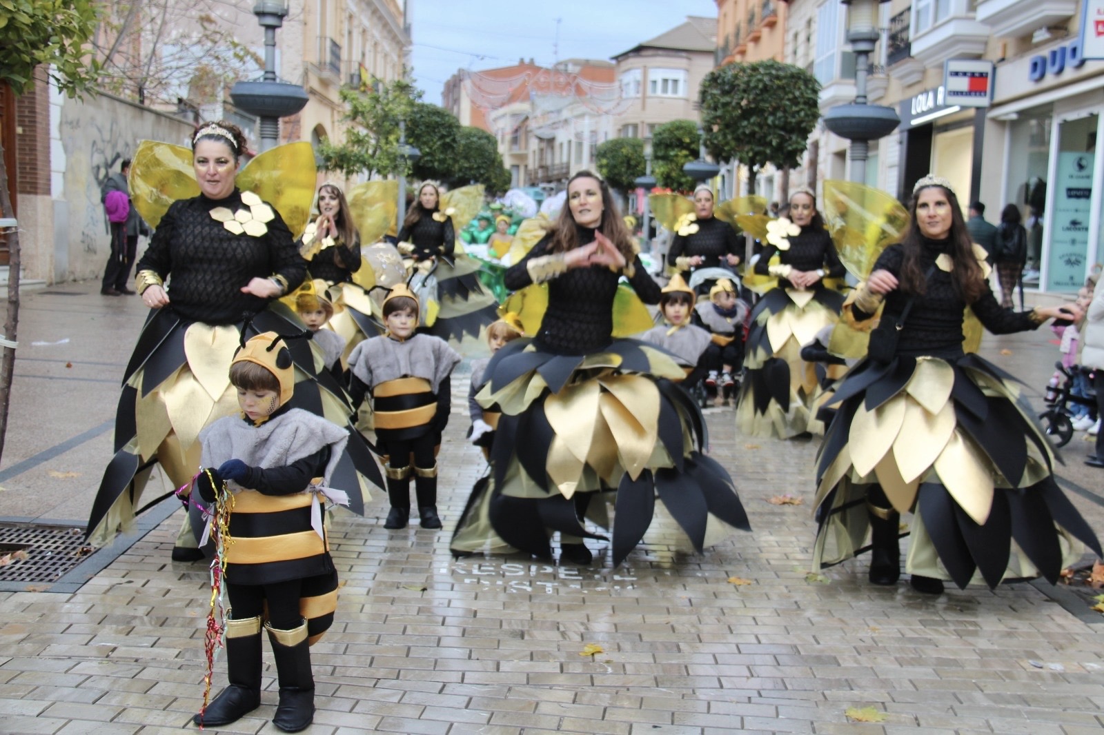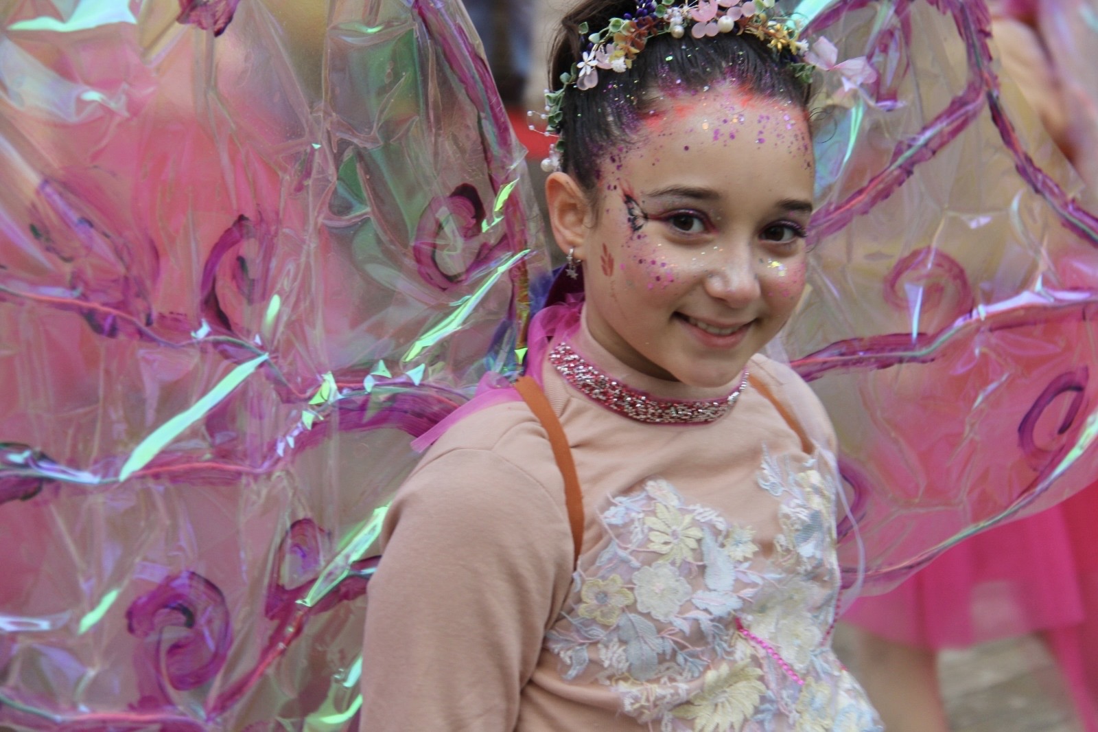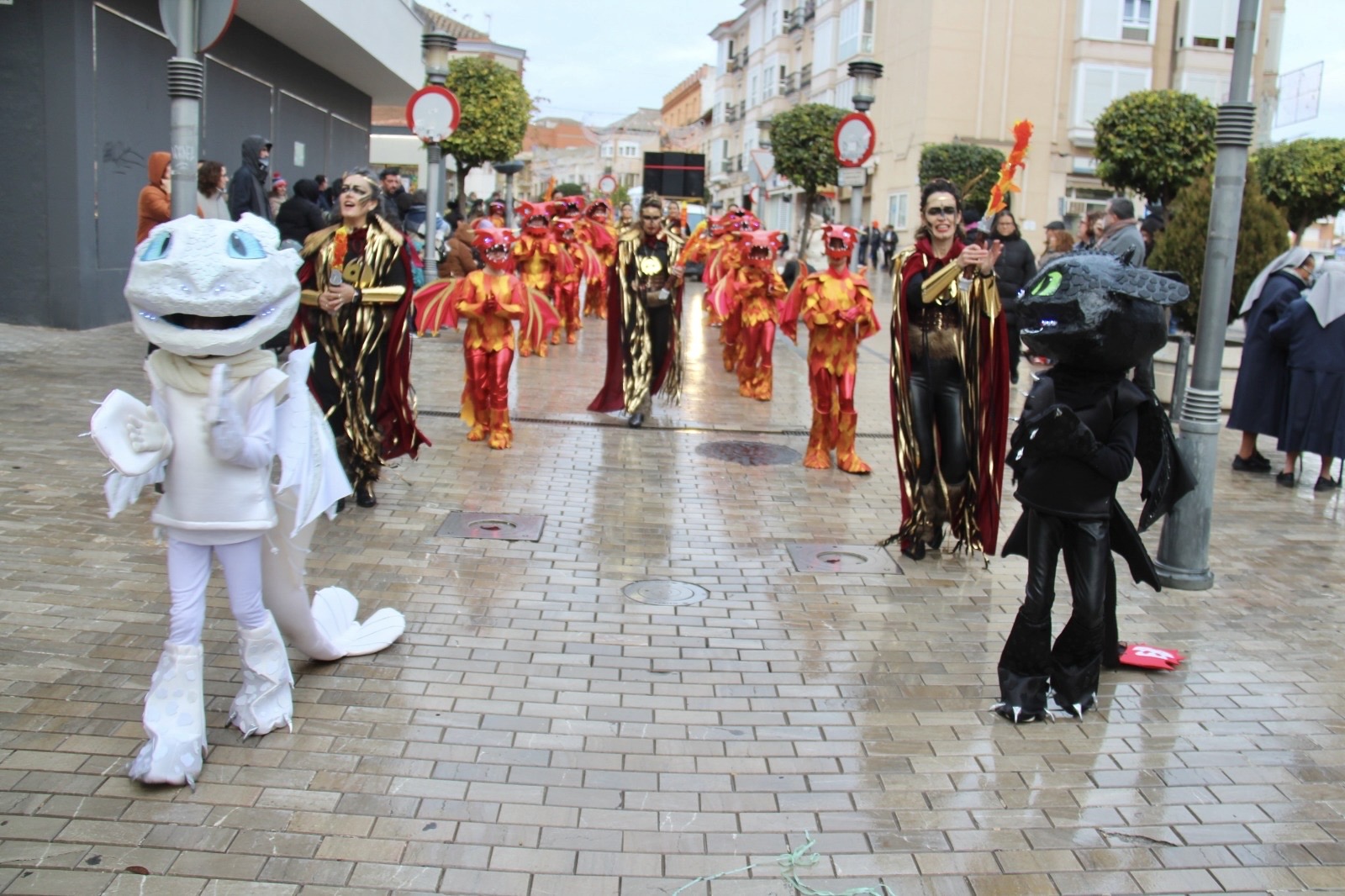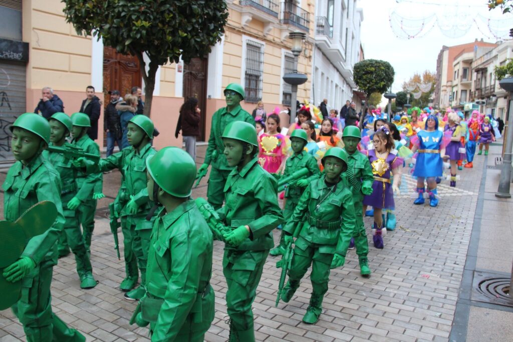 En cabeza la Obispilla, Clara Huerta, alumna de la SAFA, que lideró el desfile ataviada con la vistosa capa roja. A continuación, los distintos grupos escolares, cada uno con una propuesta temática diferente, desbordando imaginación y trabajo colectivo. Entre los montajes, se pudieron ver juguetes salidos de un colorido baúl, soldados de plomo, vestidos florales, nubes de colores, perritos rosas con tutús, criaturas fantásticas, Alicia en el País de las Maravillas, la noche estrellada de Van Gogh, dragones chinos, personajes clásicos de la literatura infantil, guerreros y un largo etcétera. Todo ello con la música de la charanga “Deskaraos” y la animación del numeroso público que abarrotó el centro de la ciudad, a pesar de las bajas temperaturas.