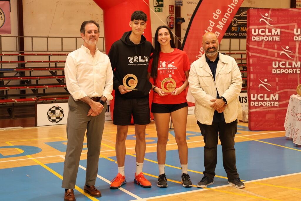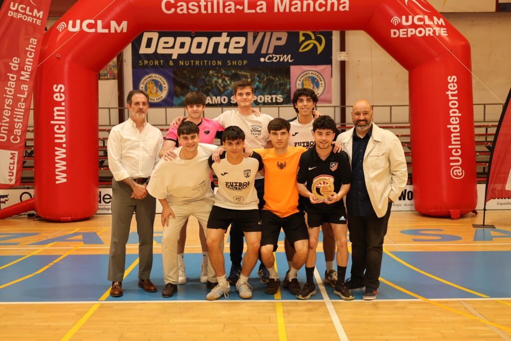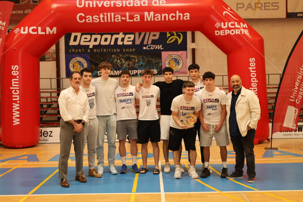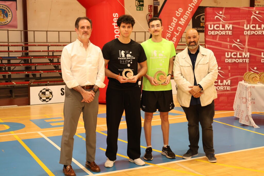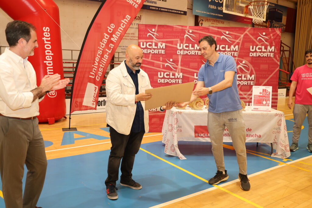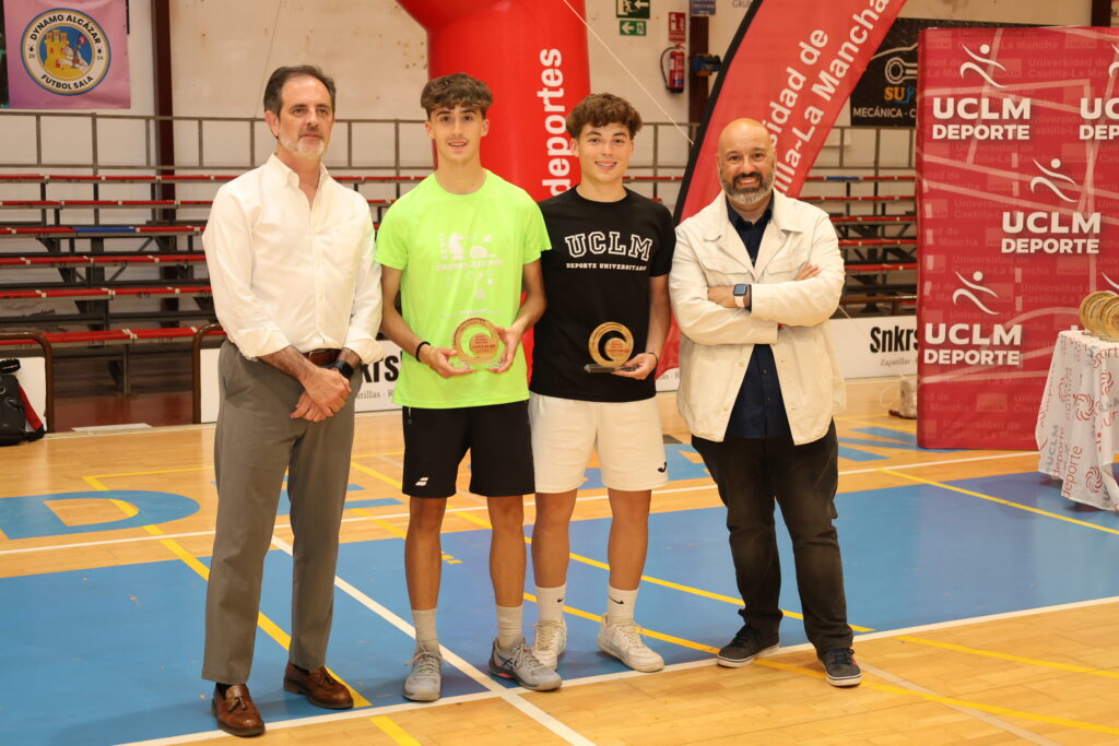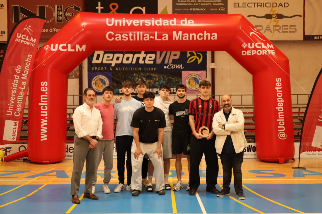 El acto de entrega de premios ha contado con la presencia del teniente de alcalde de Alcázar de San Juan, Javier Ortega, quien ha acompañado al vicerrector de Cultura, Deporte y Compromiso Social, César Sánchez, en la entrega de trofeos a los equipos ganadores y finalistas.