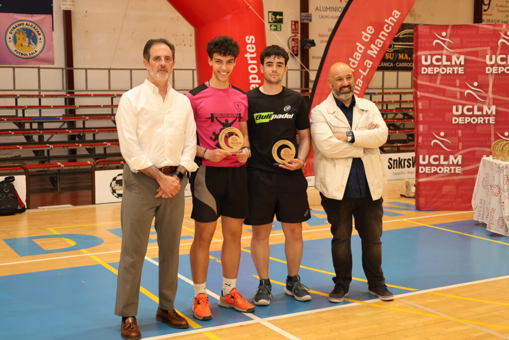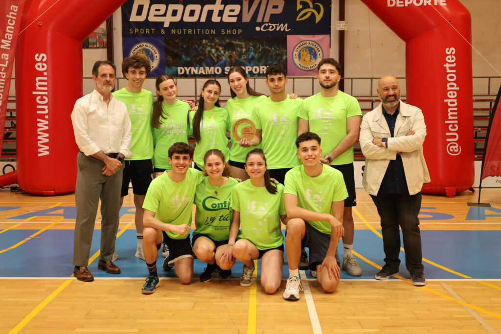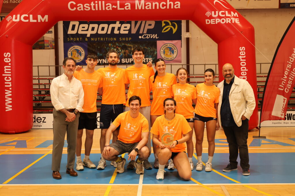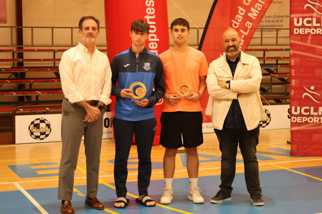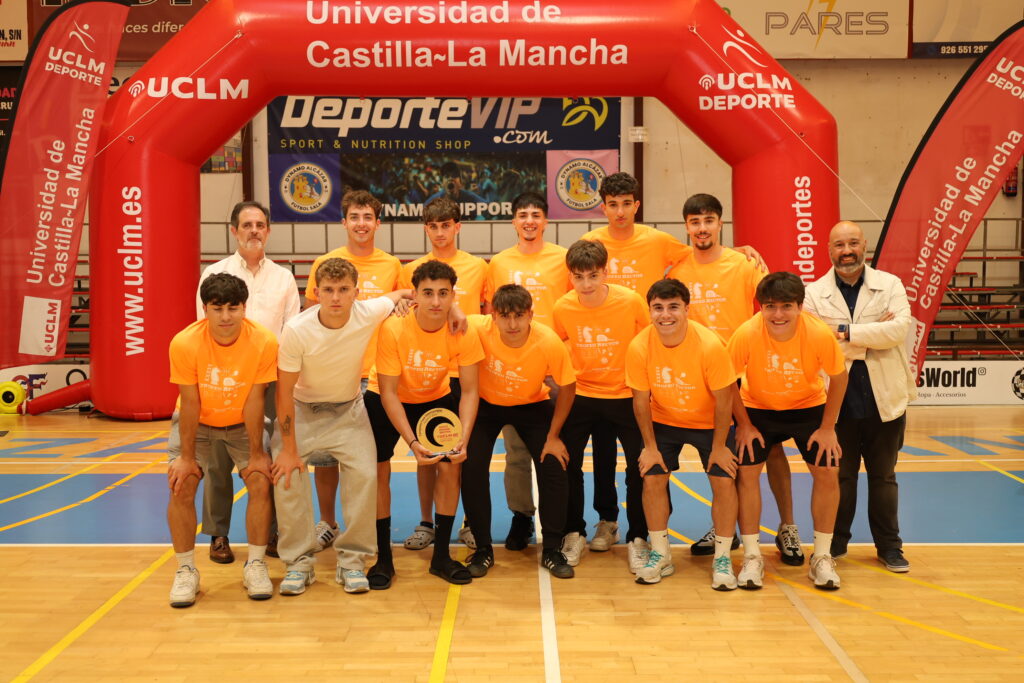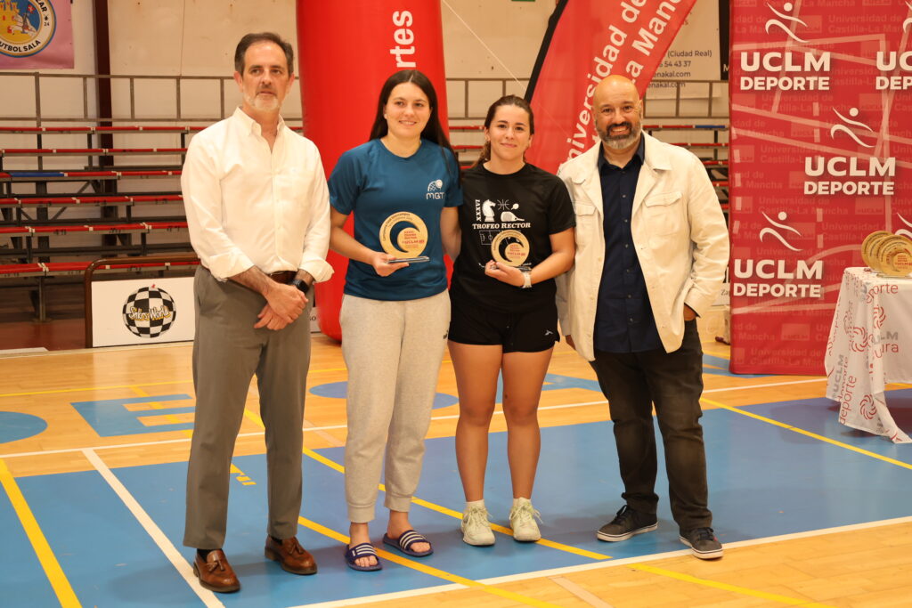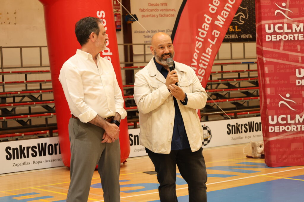 El acto de entrega de premios ha contado con la presencia del teniente de alcalde de Alcázar de San Juan, Javier Ortega, quien ha acompañado al vicerrector de Cultura, Deporte y Compromiso Social, César Sánchez, en la entrega de trofeos a los equipos ganadores y finalistas.