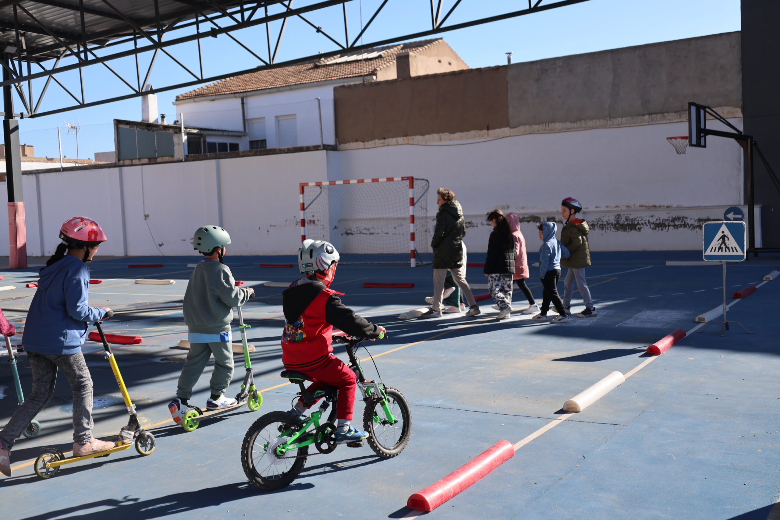 El patio del CEIP El Santo se ha transformado esta mañana en un circuito de educación vial donde los más pequeños han puesto en práctica los conocimientos teóricos adquiridos durante el curso de Educación Vial 2025-2026 impartido por la Policía Local de Alcázar de San Juan. La alcaldesa de Alcázar de San Juan, Rosa Melchor, acompañada por la concejala Bárbara Sánchez-Mateos y el jefe de la Policía Local, Pedro Lorente, ha visitado el centro para acompañar a su director, Pablo Serrano, en una jornada marcada por el aprendizaje sobre ruedas y el respeto a las normas de convivencia urbana.