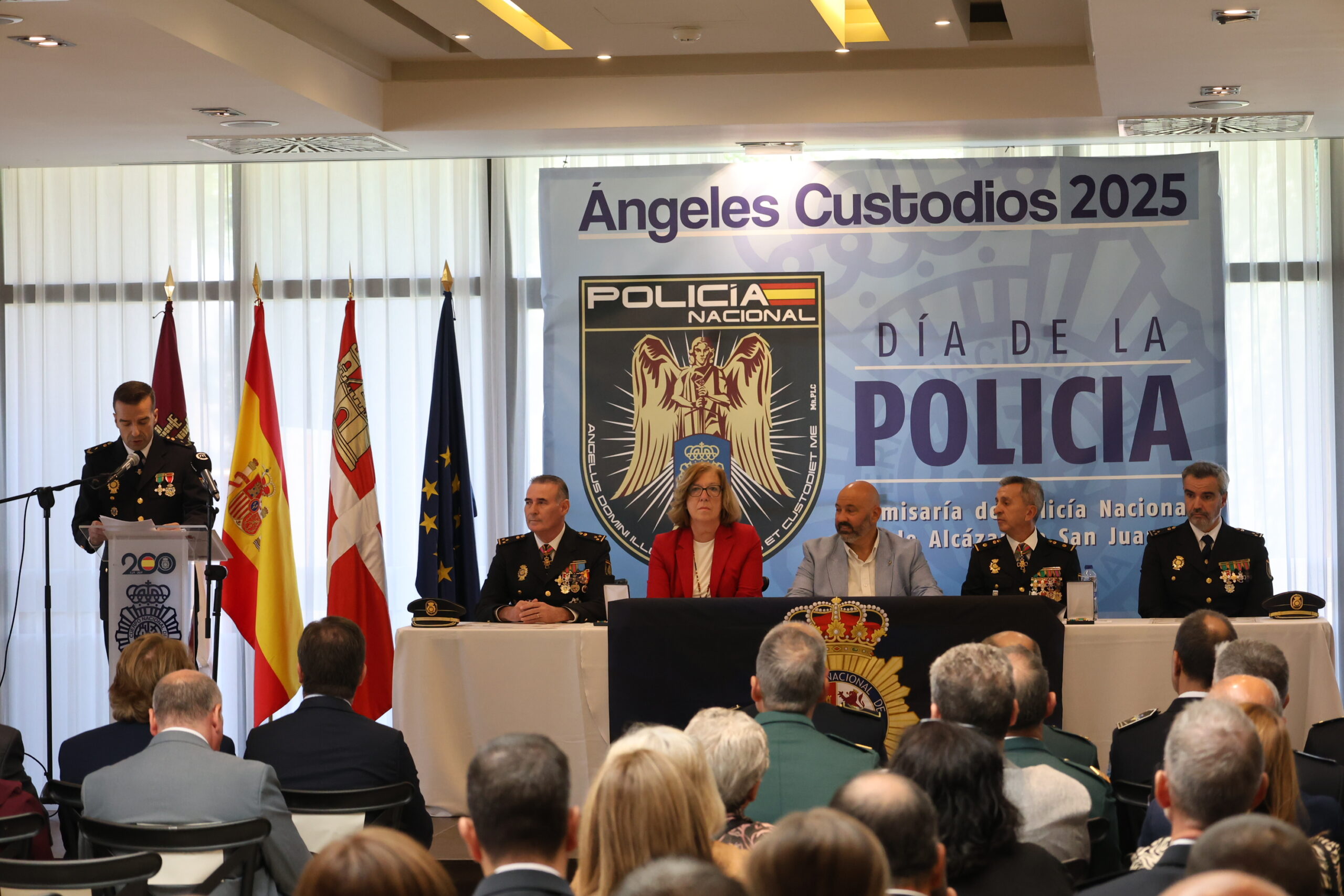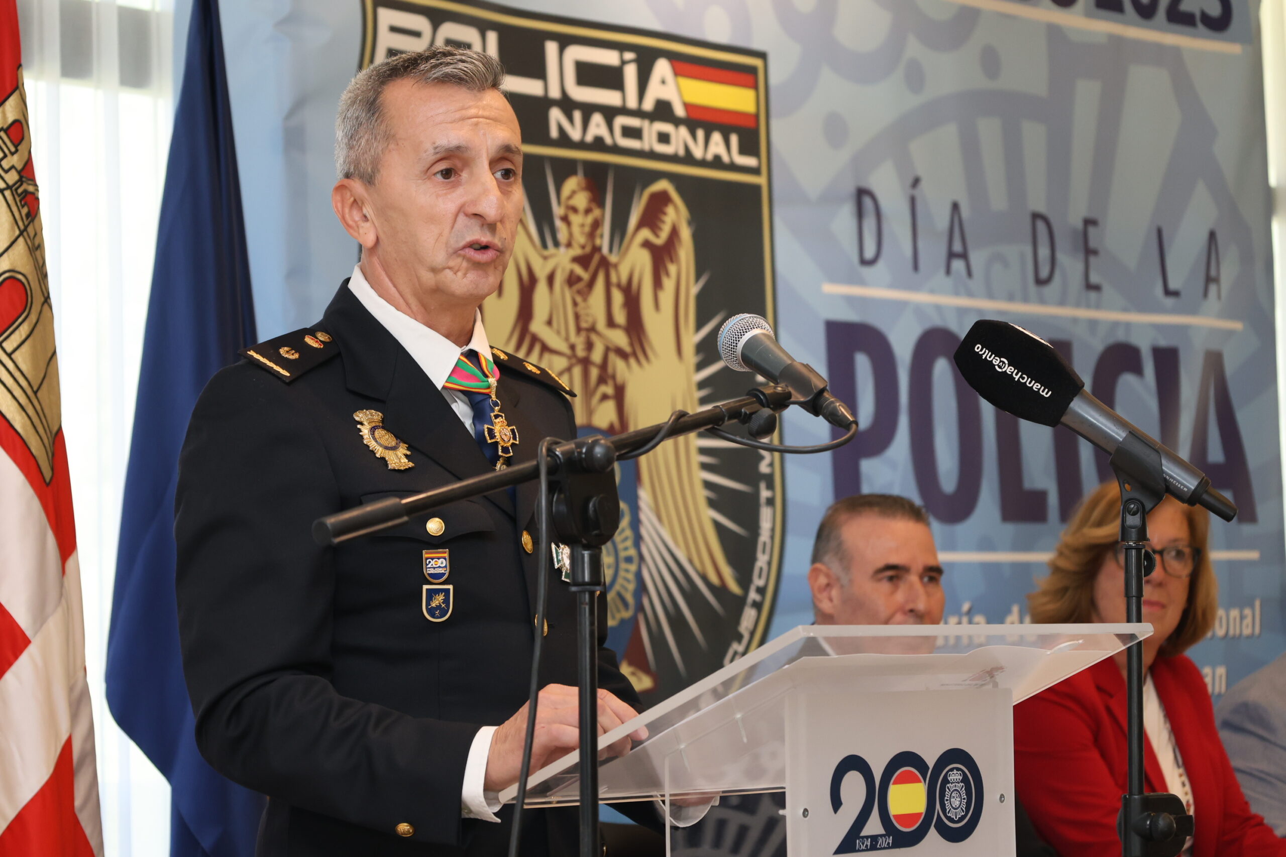 El inspector jefe de la Policía Nacional de Alcázar de San Juan, Ángel Camacho, ha destacado durante su intervención la importancia de celebrar todos los años este día, en el que se pone en valor el incansable trabajo de la Policía Nacional, una institución «moderna, eficaz e integrada, caracterizada por la excelente preparación de sus agentes y por su cercanía a la ciudadanía».