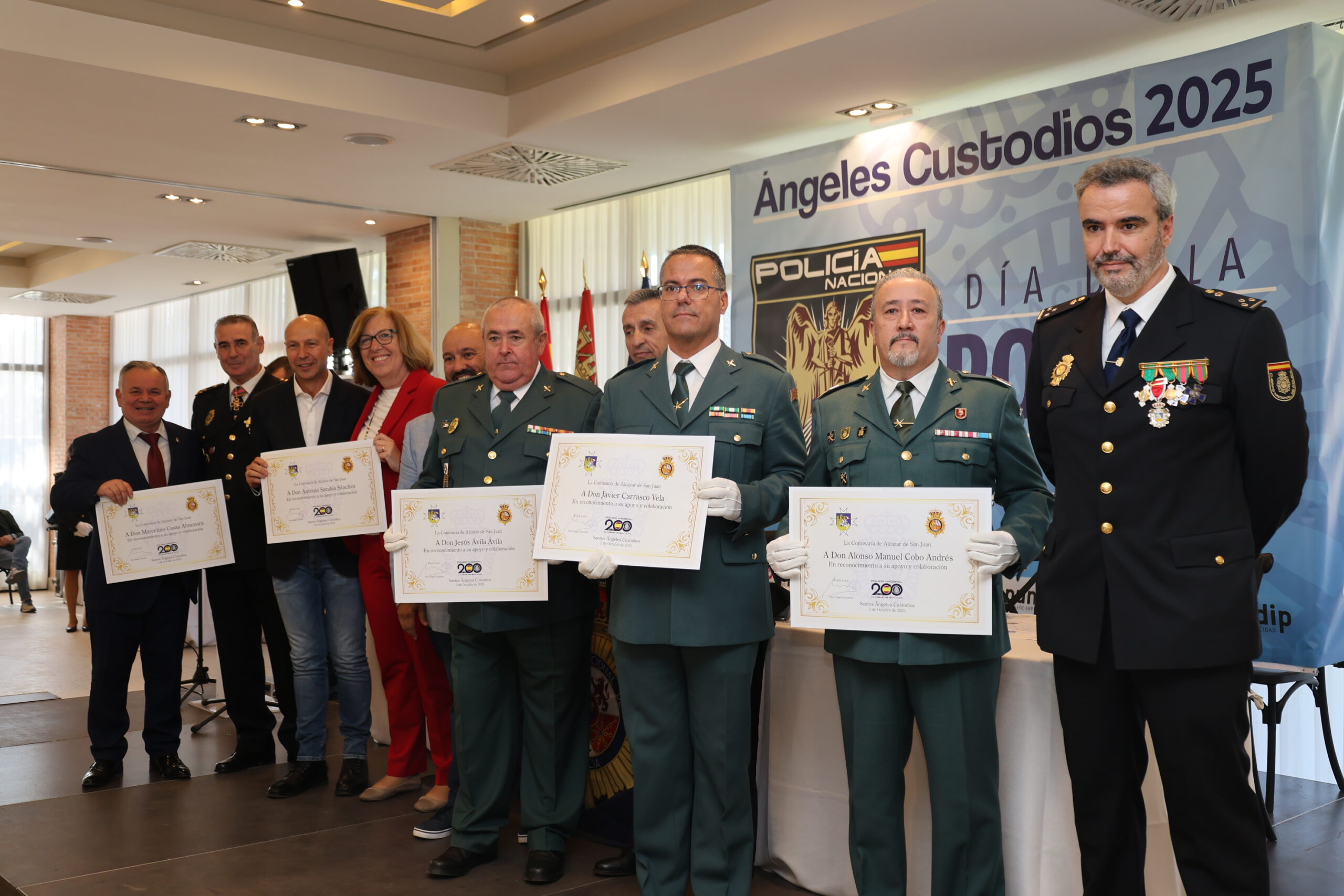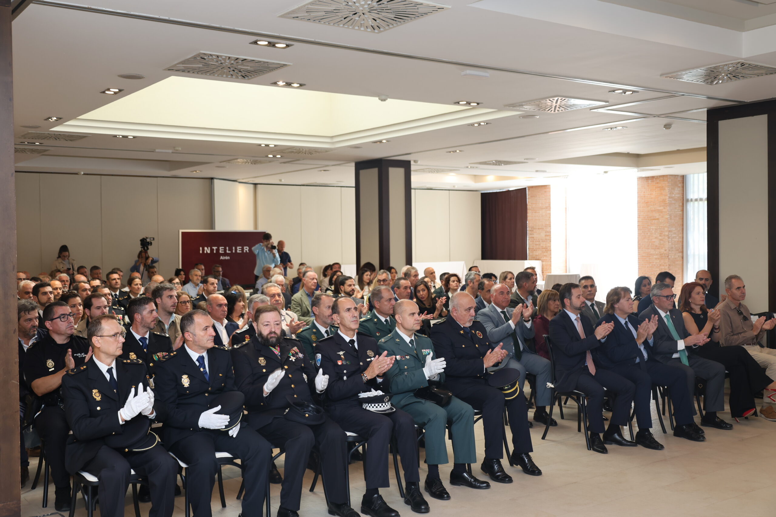Al finalizar la misa, la celebración se ha trasladado al Hotel Intelier Airén, donde ha tenido lugar el acto institucional en el que se ha realizado la entrega de medallas y reconocimientos a agentes, autoridades, empresarios y representantes de la sociedad civil, que ha precedido a una jornada de convivencia disfrutando de un vino y un aperitivo.