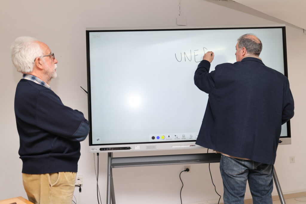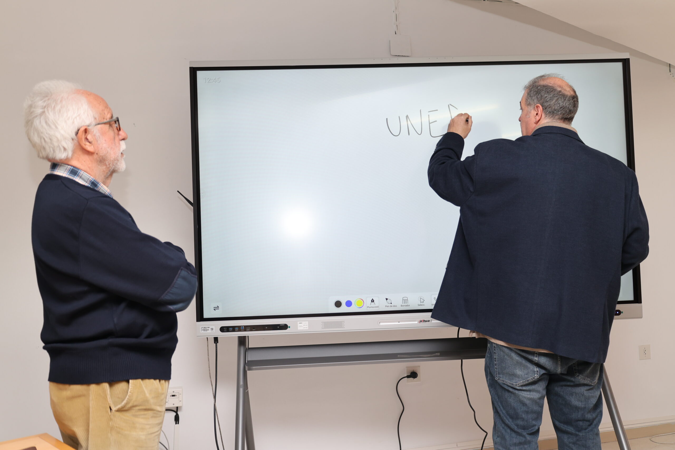 Estas pantallas cuentan con tecnología Zero Air Gap y módulos OPS (ordenadores integrados), lo que permite una interacción fluida tanto en clases presenciales como online: “Permiten interactuar con el alumnado de múltiples formas; incluso mediante códigos QR los estudiantes pueden descargar en tiempo real los ficheros con los que se está trabajando”, ha explicado Luna, subrayando que esta inversión busca mejorar la calidad docente y la experiencia de aprendizaje.