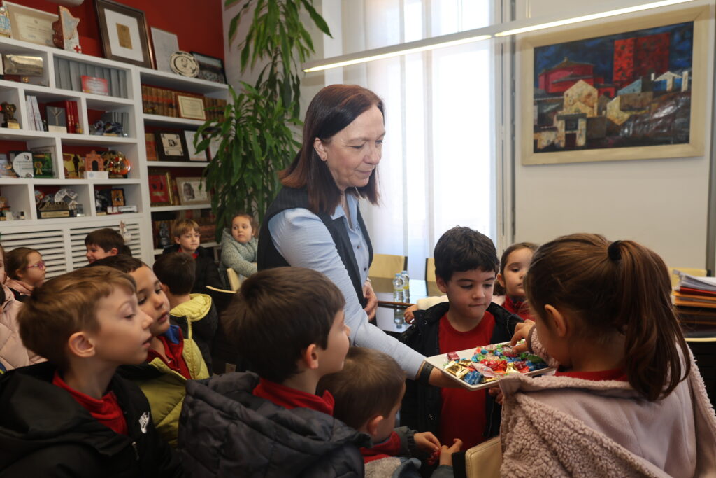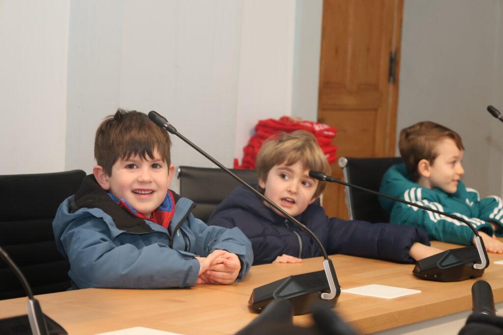 La alcaldesa, Rosa Melchor, ha ejercido de anfitriona recibiendo a los pequeños en el Salón de Plenos. En un ambiente distendido y cercano, los niños y niñas han ocupado los asientos de los concejales y han convertido el espacio en un foro de curiosidad, en el que han podido plantear preguntas de lo más variopintas, interesándose por el camino que recorrió Melchor para llegar a ser alcaldesa o qué gestiones realiza en su día a día para hacer de Alcázar de San Juan un lugar mejor.