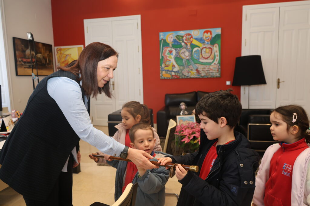 Tras la charla en el Salón de Plenos, la alcaldesa ha invitado al grupo a visitar su despacho oficial. Allí, los más pequeños han podido ver de cerca el bastón de mando, símbolo de la autoridad municipal y de la responsabilidad que conlleva el servicio a la ciudad. Para finalizar la visita y como recuerdo de esta experiencia, la alcaldesa ha hecho entrega a cada niño y niña de una camiseta con el eslogan promocional #EsAlcázar y un lapicero, que han portado para posar en la tradicional fotografía grupal.