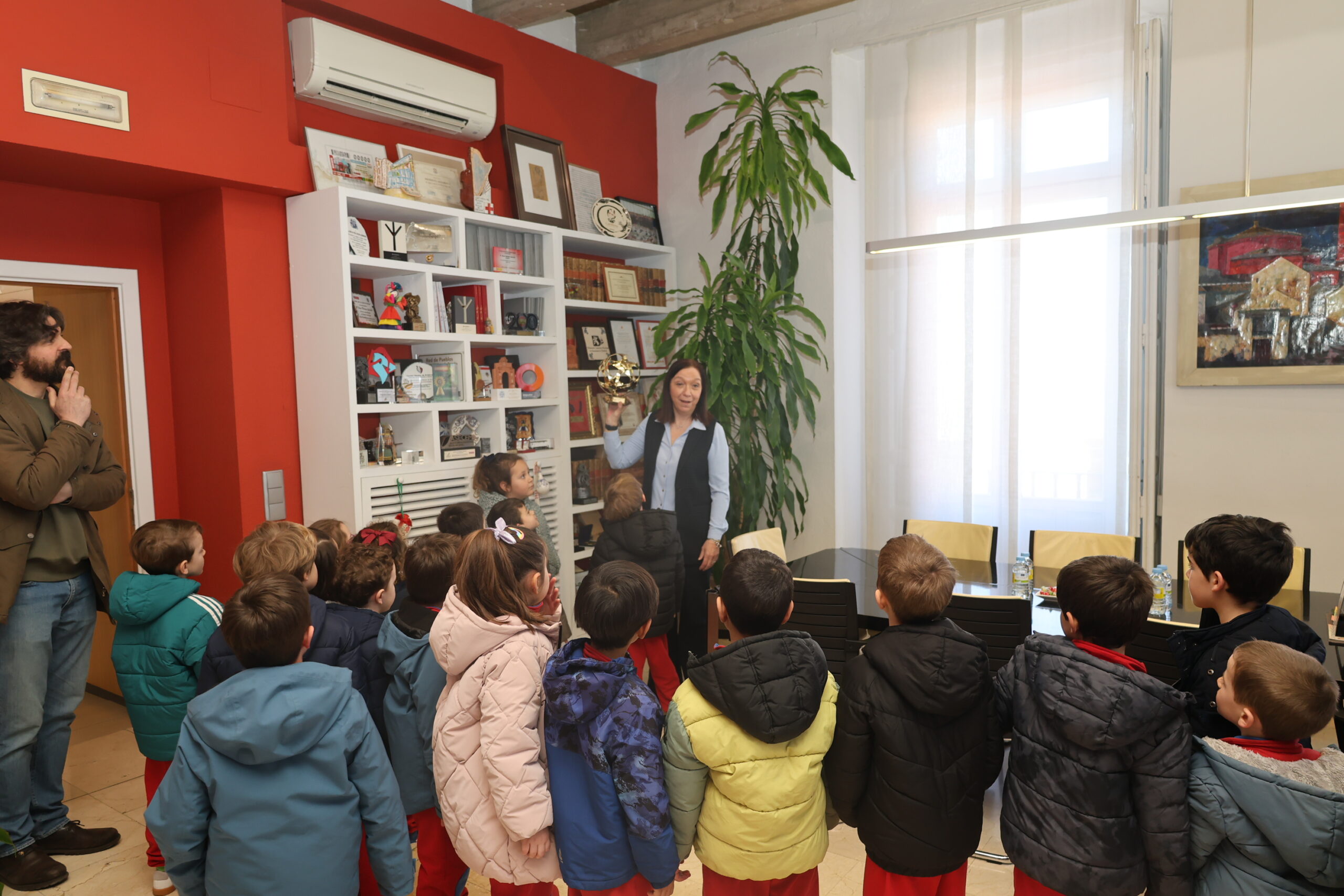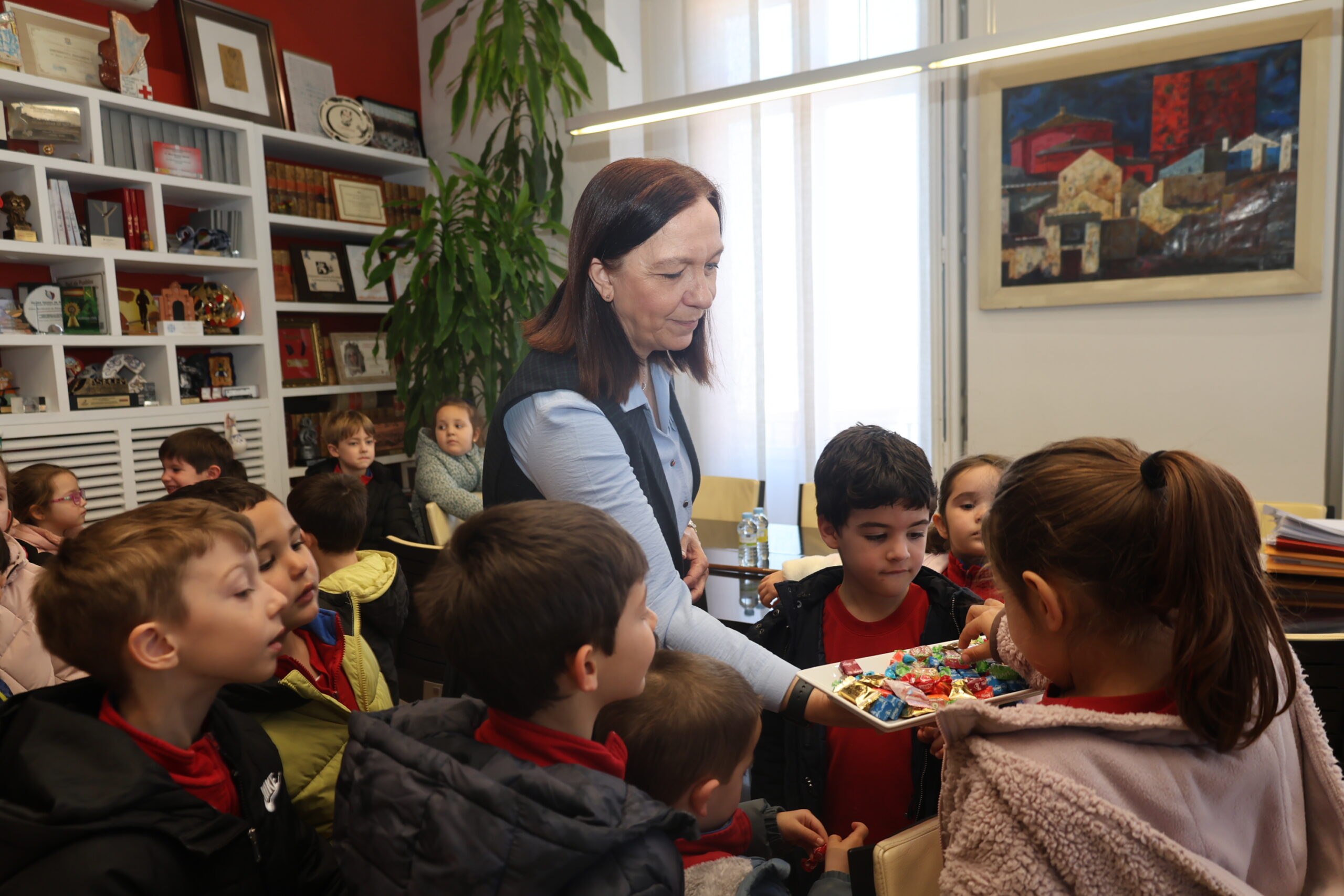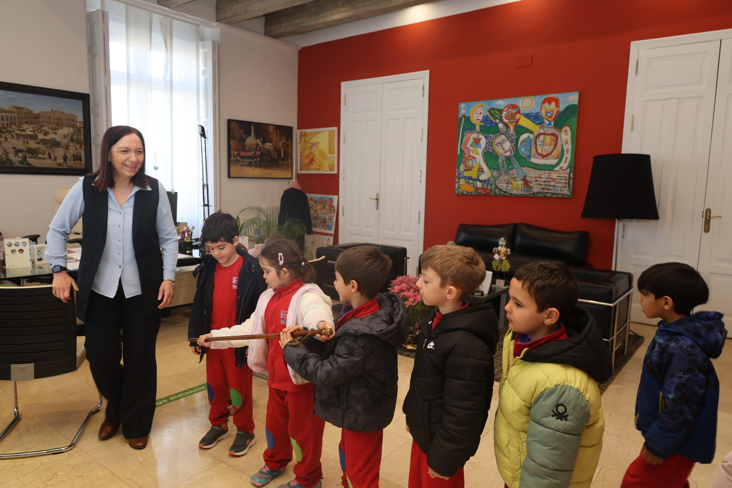 Tras la charla en el Salón de Plenos, la alcaldesa ha invitado al grupo a visitar su despacho oficial. Allí, los más pequeños han podido ver de cerca el bastón de mando, símbolo de la autoridad municipal y de la responsabilidad que conlleva el servicio a la ciudad. Para finalizar la visita y como recuerdo de esta experiencia, la alcaldesa ha hecho entrega a cada niño y niña de una camiseta con el eslogan promocional #EsAlcázar y un lapicero, que han portado para posar en la tradicional fotografía grupal.