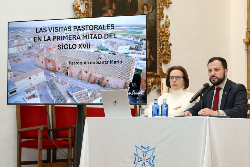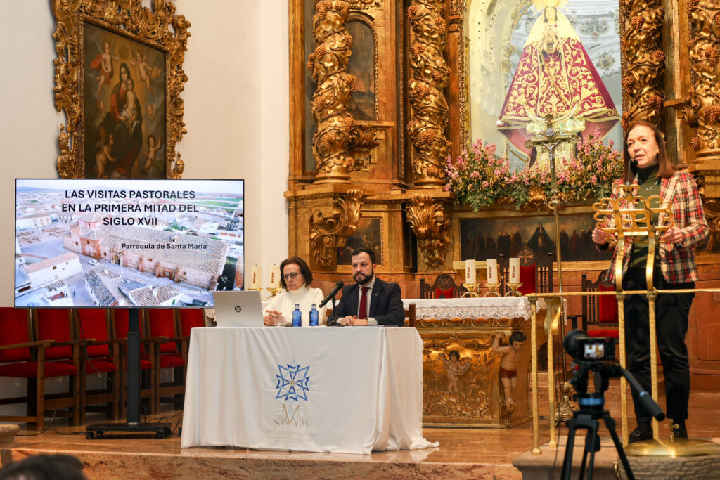 La conferenciante, María Soledad Salve, ha centrado su intervención en el análisis del libro de cuentas de la parroquia de la primera mitad del siglo XVII, un documento que recoge las visitas de los vicarios visitadores de la Orden de San Juan. Según ha explicado Salve, estas visitas eran “auténticas inspecciones tanto de los bienes materiales y del edificio como de la situación espiritual y moral de clérigos y seglares”.