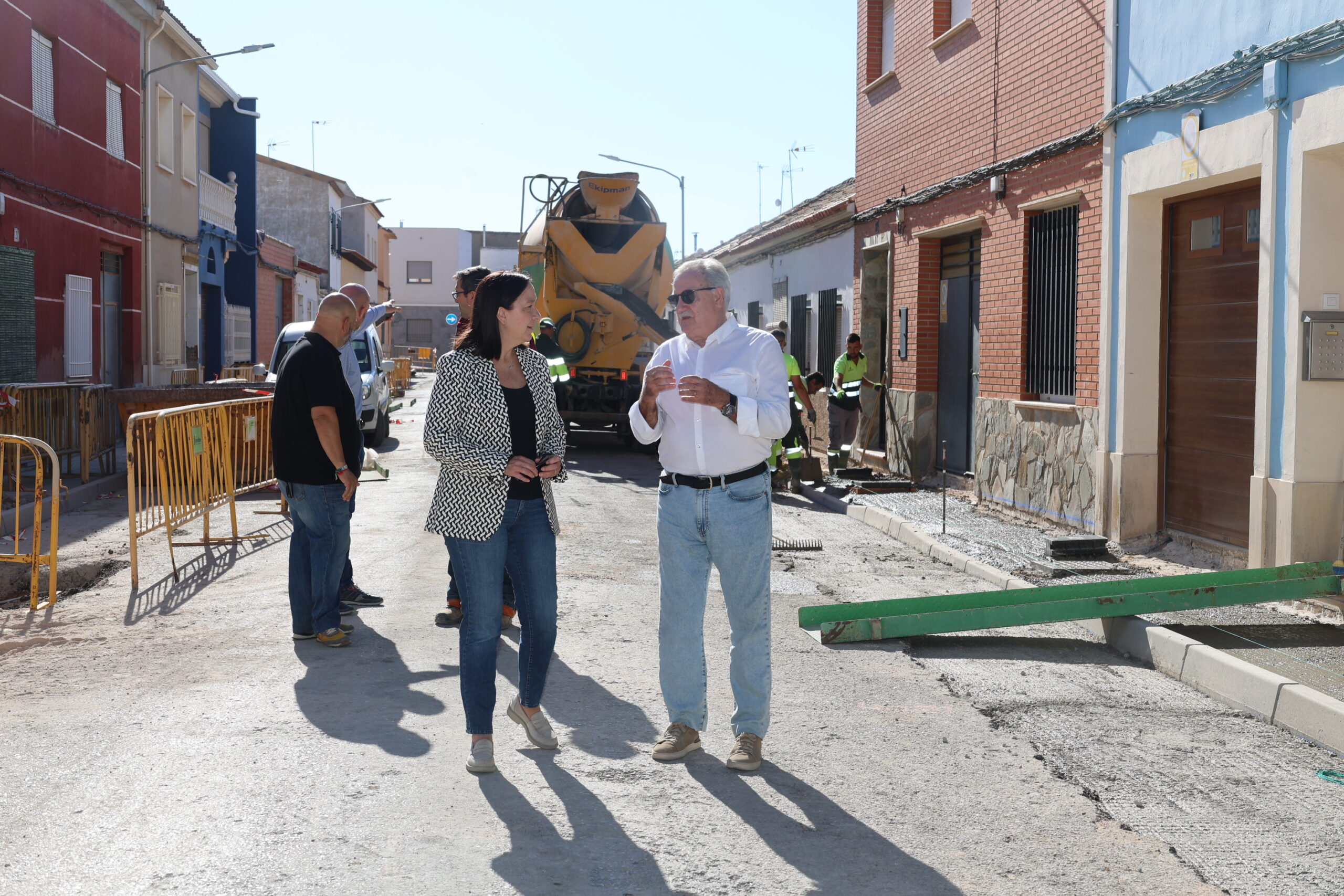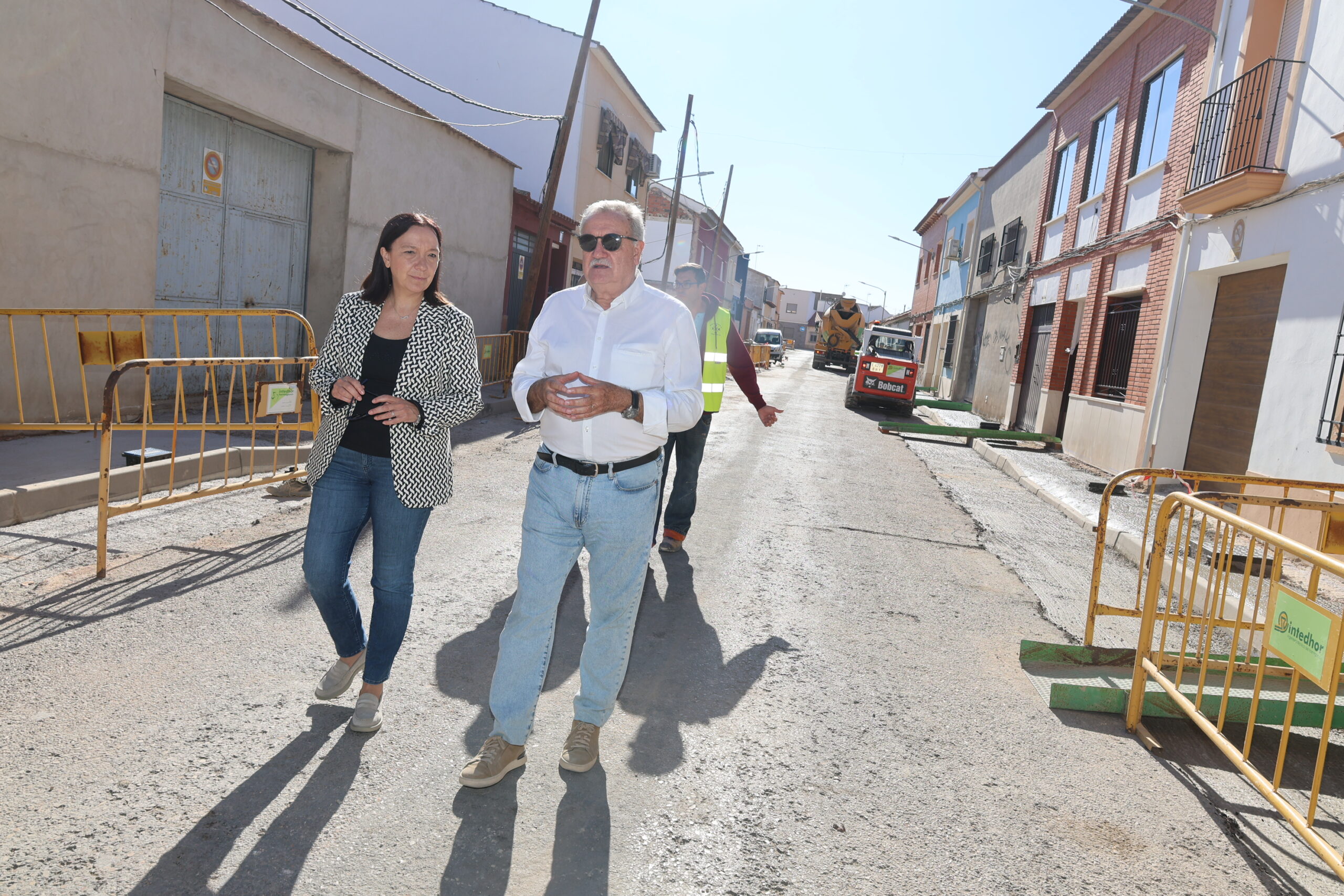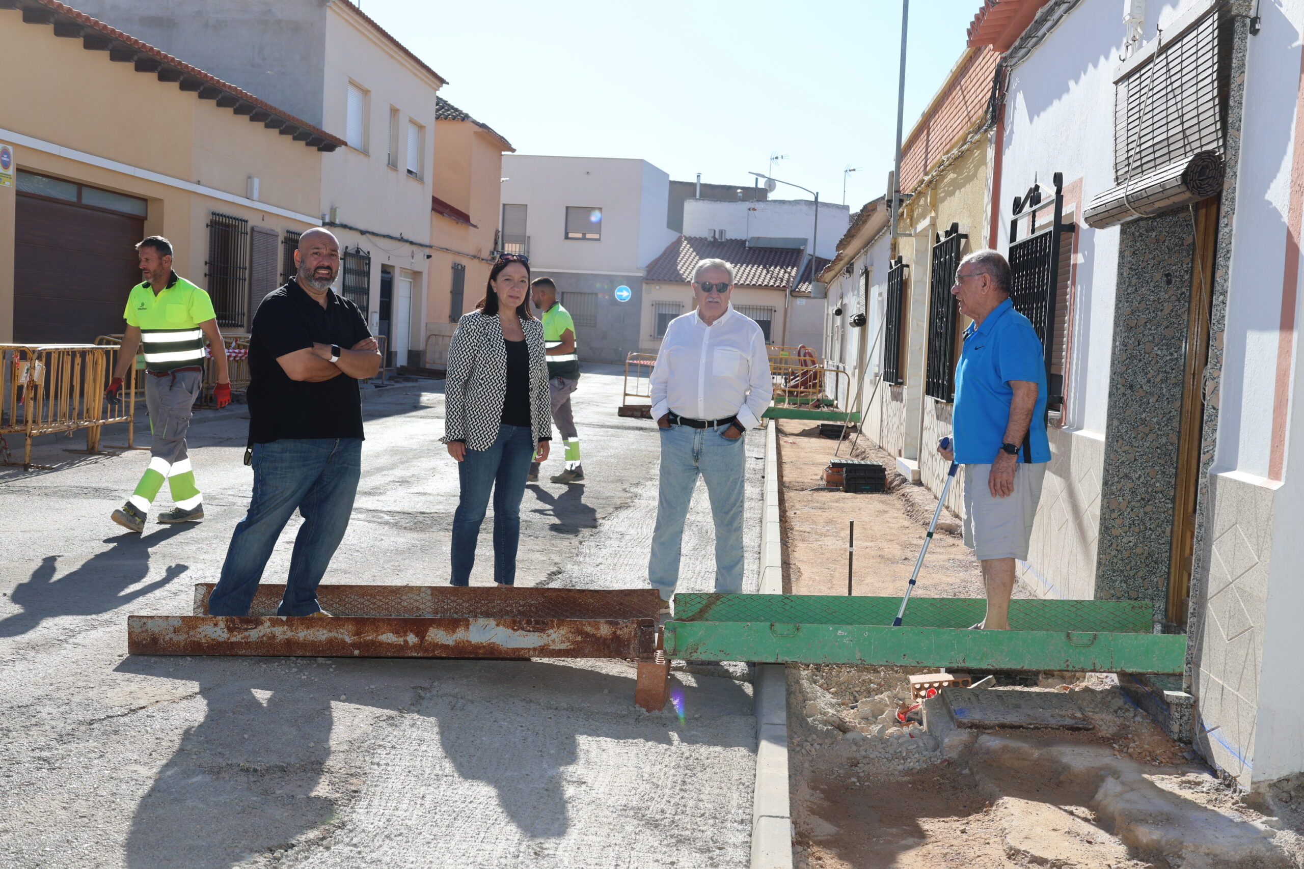 La alcaldesa de Alcázar de San Juan, Rosa Melchor, junto al concejal de Infraestructuras, Javier Ortega, ha visitado esta mañana las obras de remodelación integral que se están llevando a cabo en la calle Hidalgos. La actuación, que cuenta con una inversión aproximada de 150.000 euros, tiene prevista su finalización en el mes de noviembre, de modo que la vía estará lista para su uso en torno al puente de la Constitución. Esta intervención se suma a otras actuaciones que el Ayuntamiento está desarrollando en la ciudad, como el asfaltado de la Rondilla de la Cruz Verde, las obras en la Avenida del Deporte y las próximas que se realizarán en la Avenida de los Institutos.